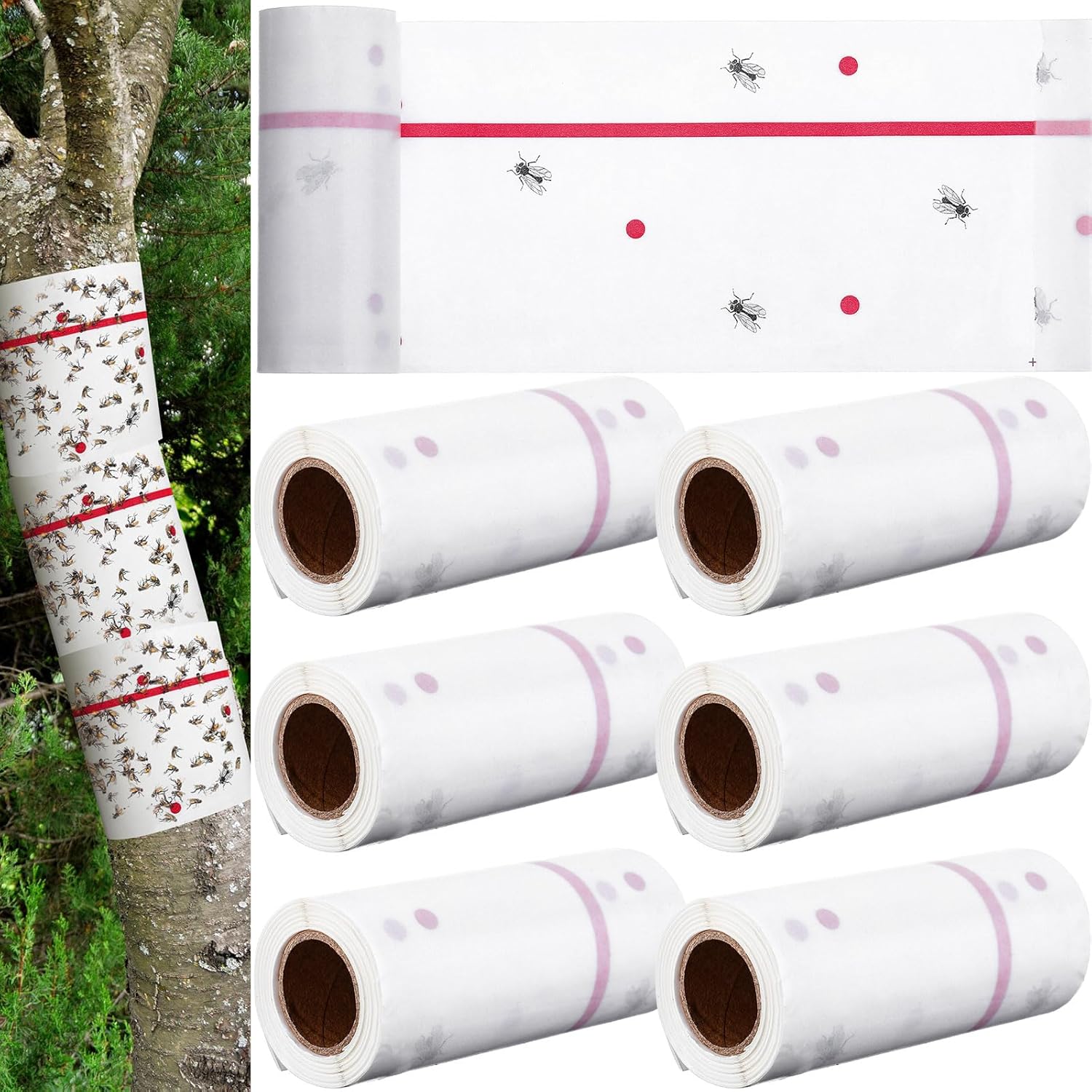 Qualirey 6 Rolls Spotted Lantern Fly Traps 30 Feet Each Roll Fly Tree Trap Sticky Strips Outdoor Fruit Glue Strips Disposable Tape Indoor Paper Sheets for Protecting Trees(White)