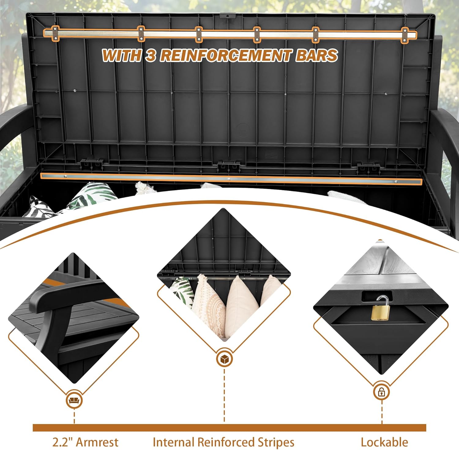 Devoko 80 Gallon Storage Bench Deck Box Lockable for Patio Furniture, Garden Decor and Outdoor Seating for Cushions, Garden Tools and Pool Supplies (Black)