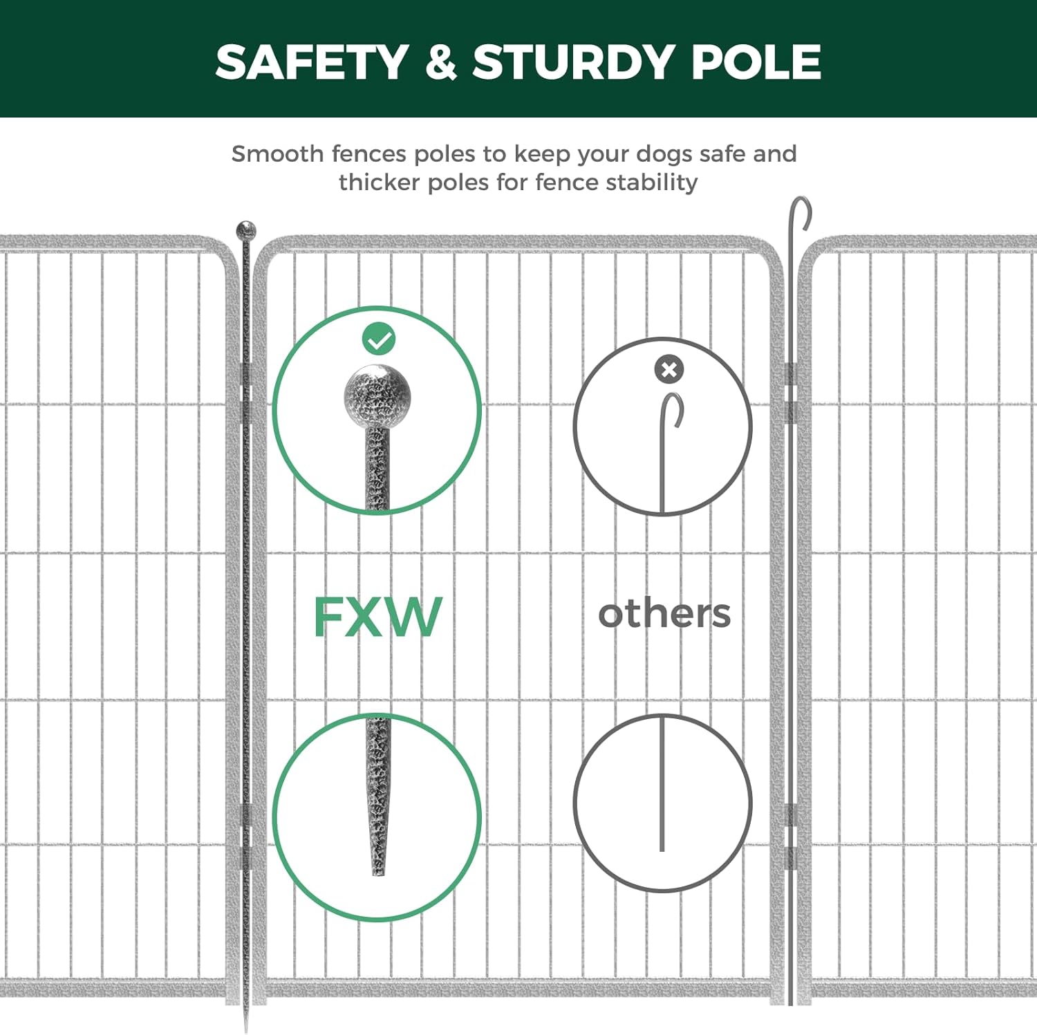 FXW Garden Fence Outdoor for The Yard – 40in(H) x 36.4ft(L) Heavy Duty Metal Animal Barrier for Dog and Rabbit, Decorative Dog Fence, 16 Panels, Silver