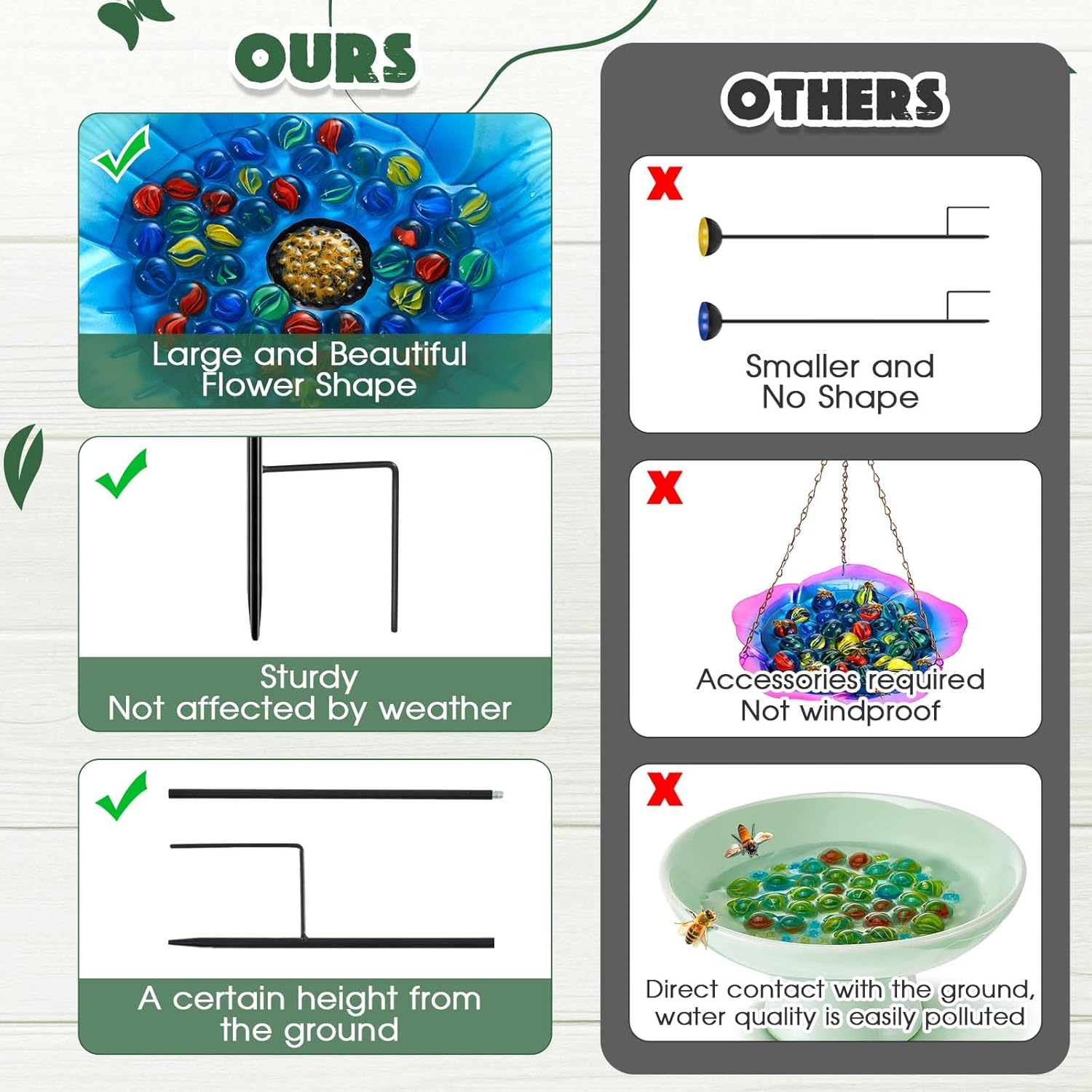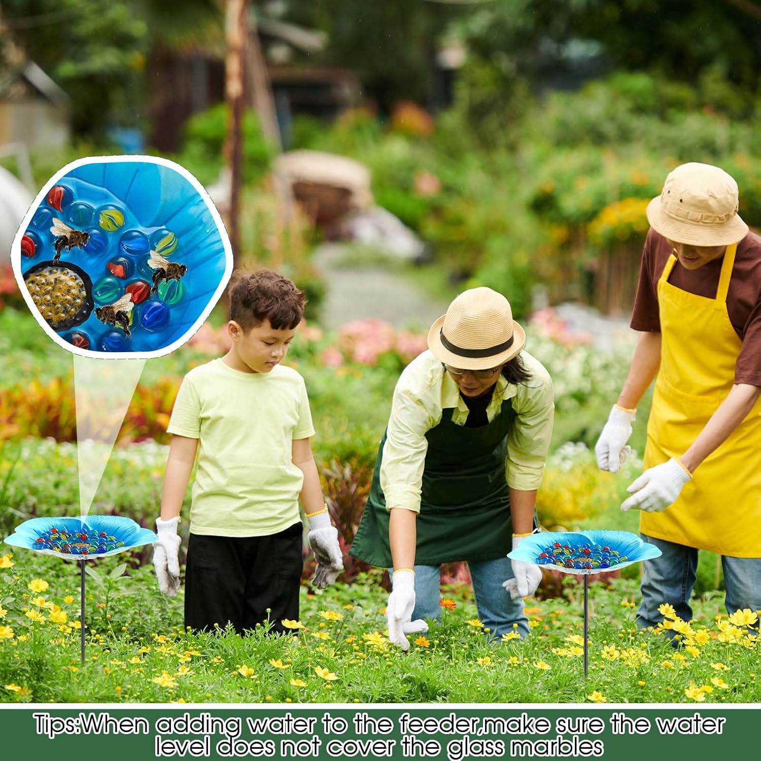 - Aesthetic Appeal: the bee water feeder isn't just functional, it doubles up as a beautifying element for your garden; Its vibrant floral pattern enhances your garden aesthetics, adding a lively touch amidst your flora and fauna