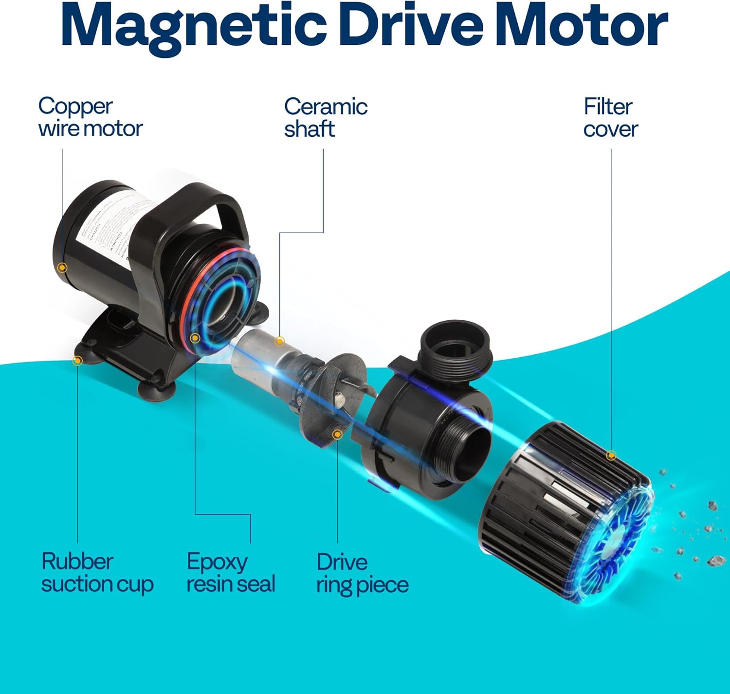 - POWERFUL PERFORMANCE: This pond pump boasts a high-quality copper wire motor and employs advanced magnetic drive motor technology for exceptional performance, energy conservation, and quiet operation; The water pump has a power rating of 175W, allowing it to lift water to a maximum height of 18 feet; It boasts an impressive flow rate of up to 3000 GPH, and the flow rate can be easily adjusted to achieve the desired fountain effect