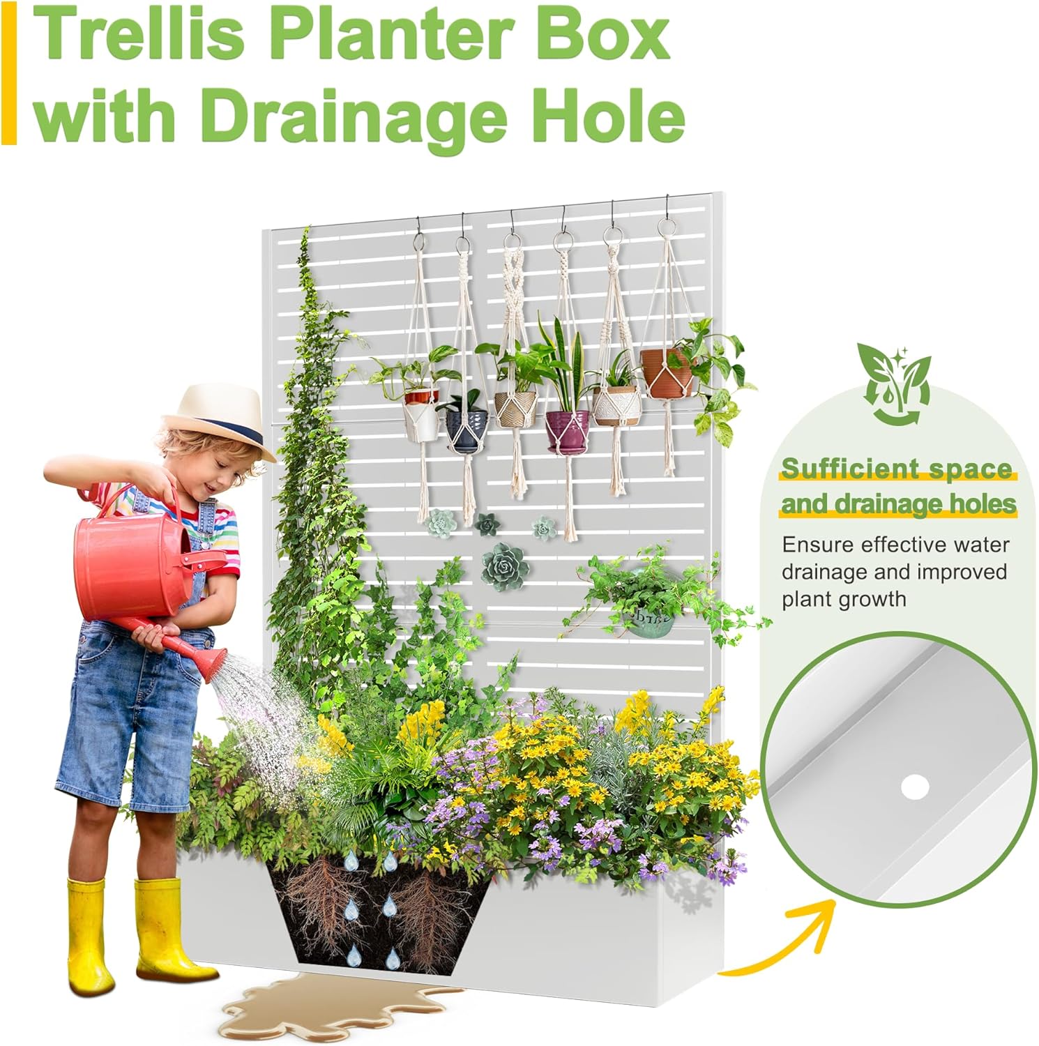 - Perfect for Climbing Plants: Create a stunning vertical garden with this trellis planter box, complete with a drainage hole to keep your plants thriving. It's the perfect choice for cultivating climbing plants and adding a touch of elegance to your outdoor space.