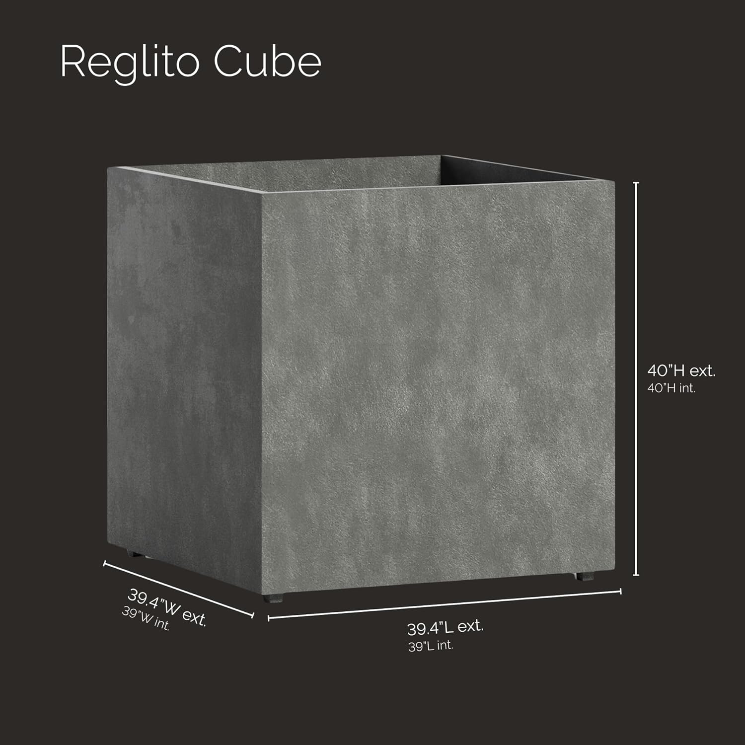 - LIGHTWEIGHT DURABILITY – Constructed from premium fiberglass and resins, the Reglito Cube’s waterproof exterior offers the look of concrete—without the weight—for easy installation and moving.
