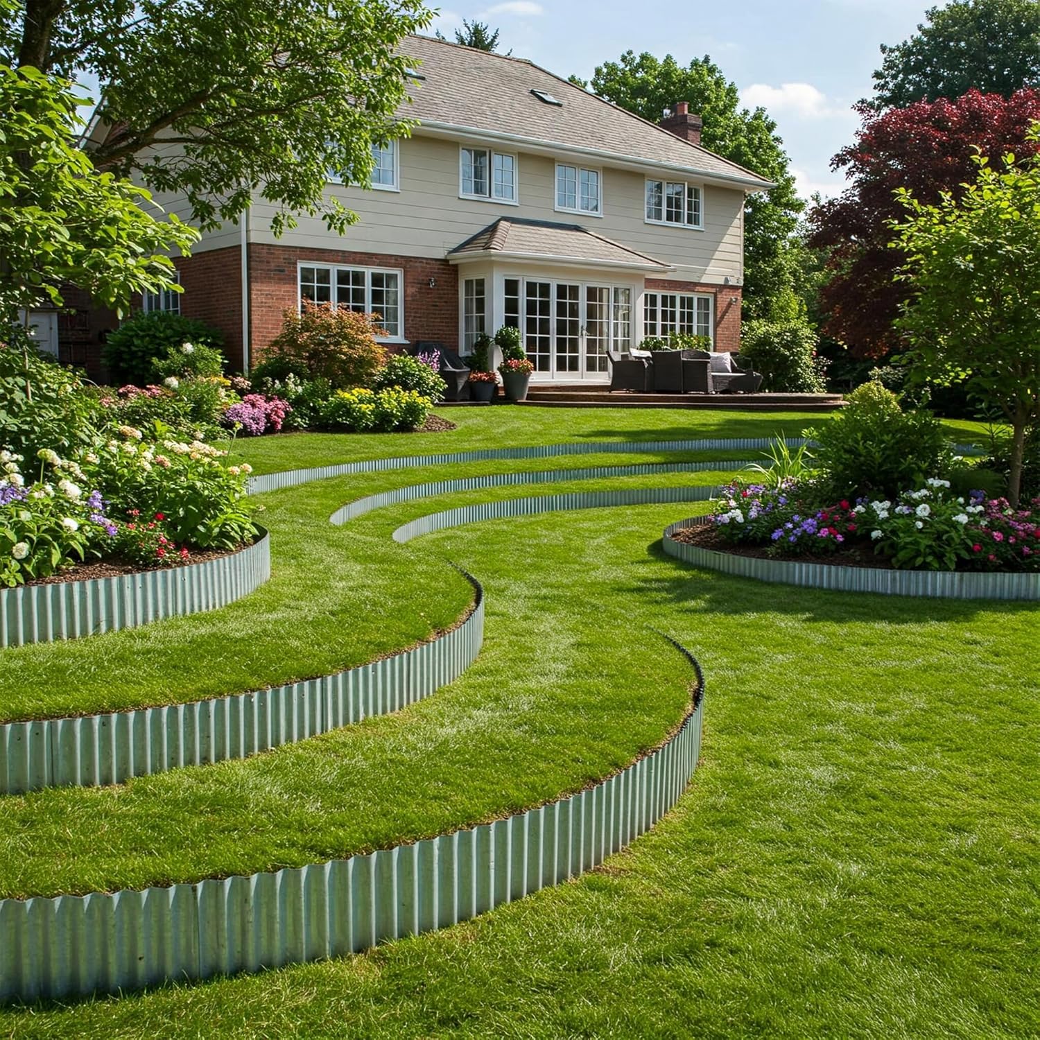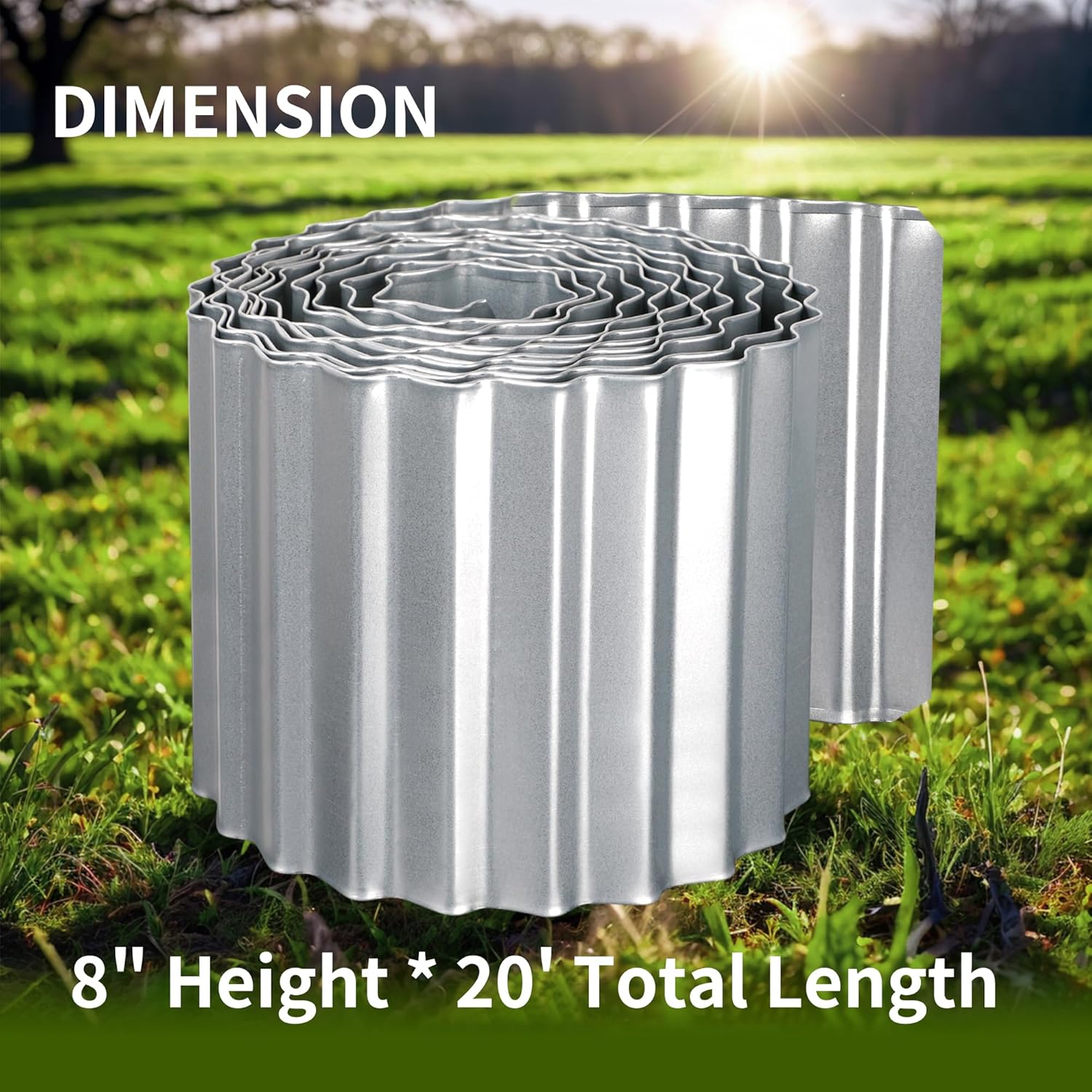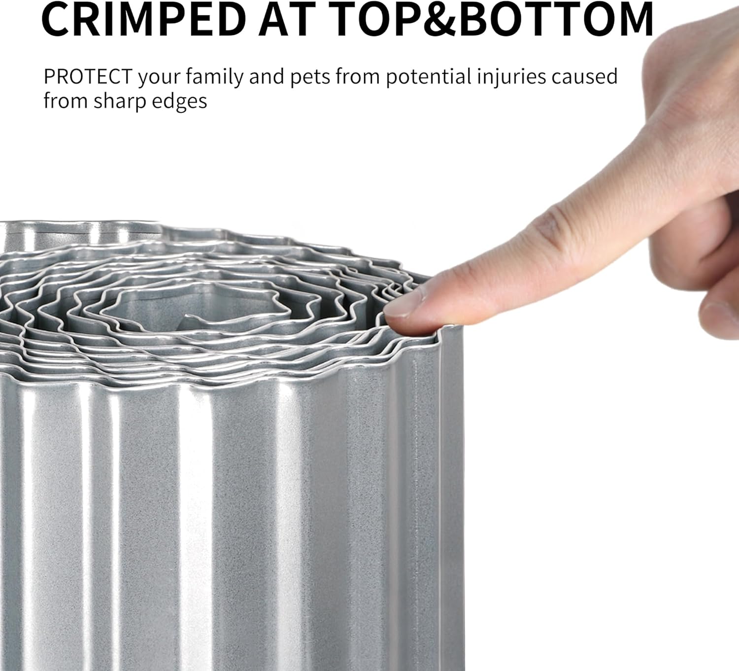 - CLEAN LOOKING: New galvanized steel, light silver, semi-sheen. This metal corrugated garden edging with hemmed edges can create a raised layer of mulch, rocks or soil and provides style and safety for your garden, lawn and flower beds.