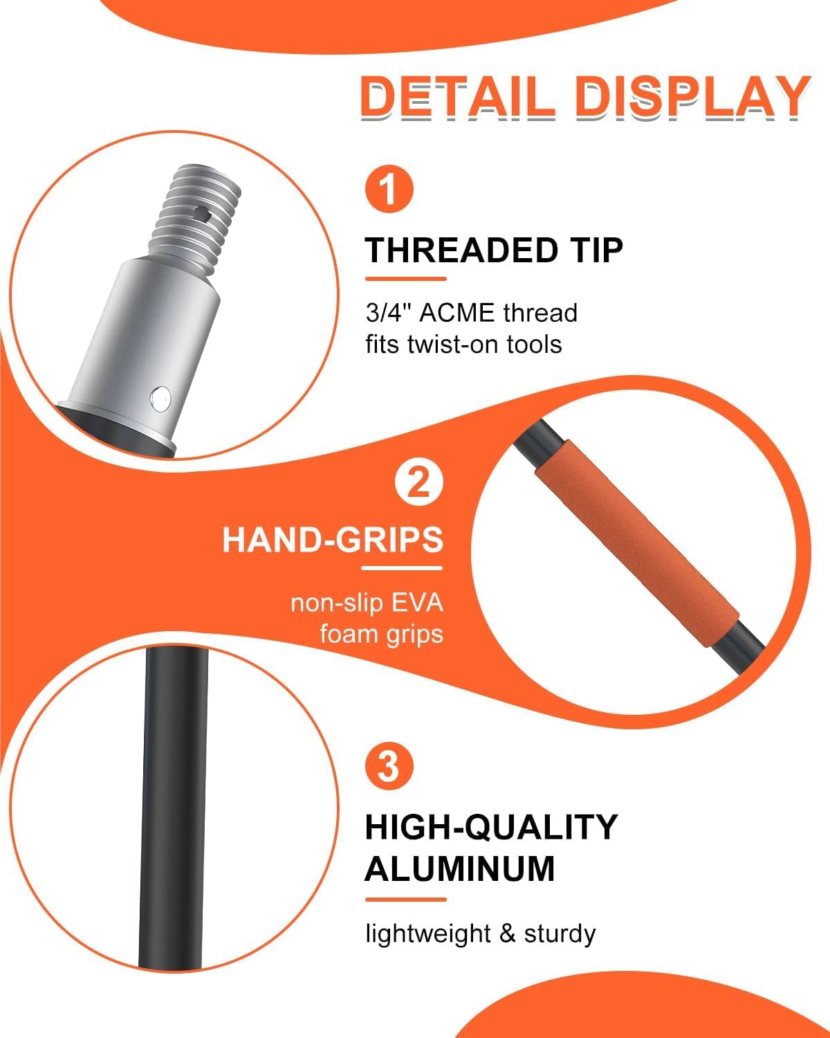 - Reach Fruit Up to 26+ Foot When Standing - 5 to 20 foot telescoping fruit picker extension pole is made of duralumin, durable and strong 4 flip-tab locks design make the telescopic wand not easy to bend when extended. Non-slip foam handle on the bottom provides you a more comfortable and reliable grip, especially in wet condition. The Buyplus fruit picker provides you with the best fruit picking experience.