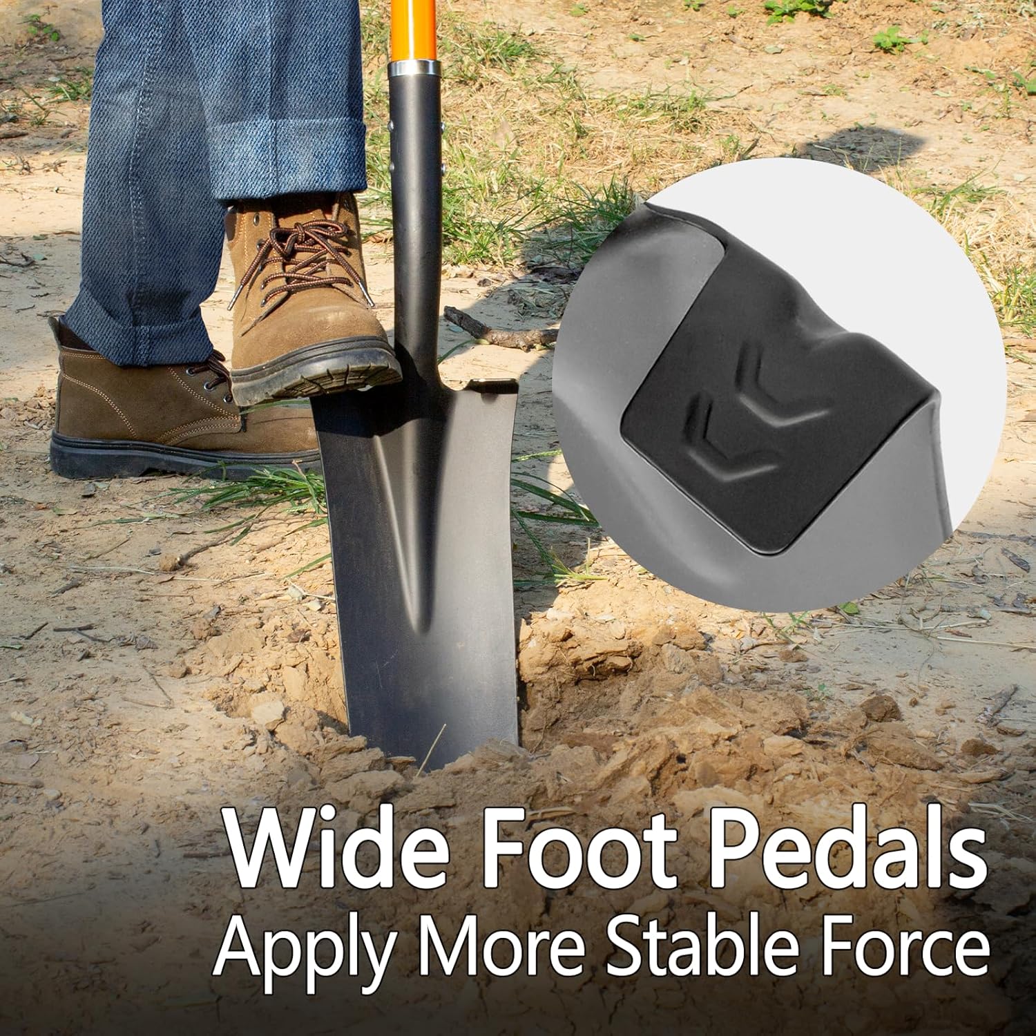 - Upgraded Thickened Handle: The shovel for digging thickened fiberglass handle is extremely strong and durable, not easy to bend or break even when faced with hard soil and thick roots, the shovel handle comes with 2 non-slip grips that provide a firm and comfortable grip, and can be held firmly in wet conditions to prevent slipping.