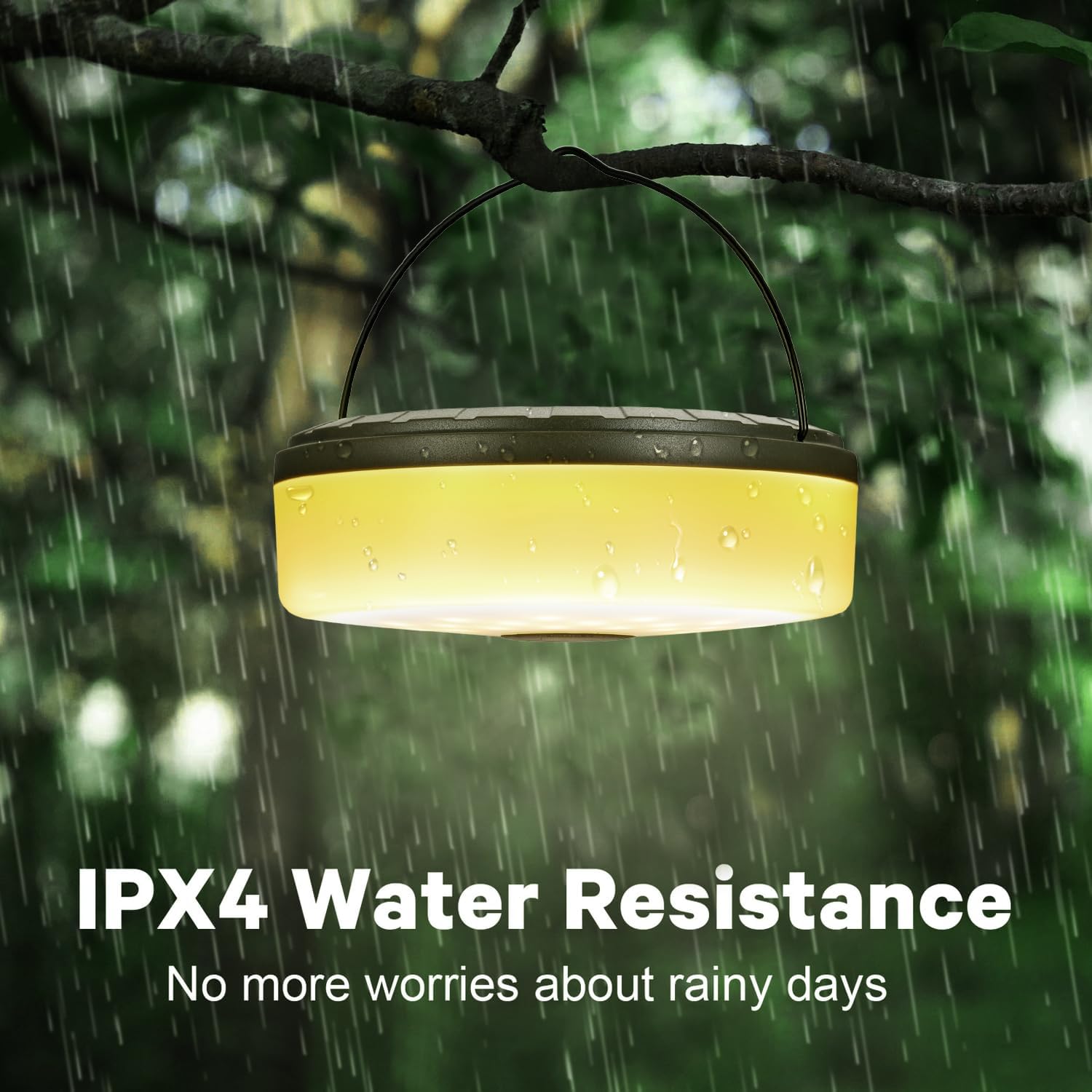 - 【Solar Powered & USB Rechargeable】This 3000mAh camping string lights features a high-efficiency solar panel and USB charging port. Both methods can be fully charged within 4-6 hours and provide up to 8 hours of continuous use. No matter what the weather is, you don't have to worry about charging issues.