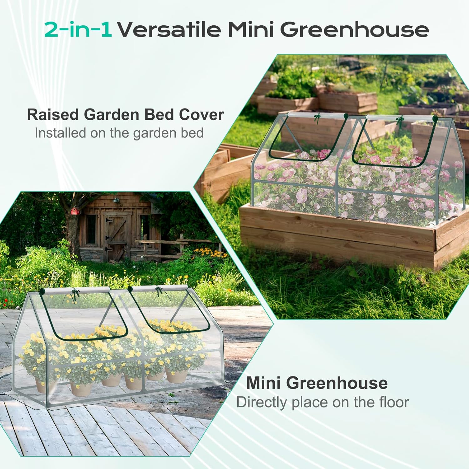 BPS 6x3x3 ft Mini Greenhouse with Transparent PVC Cover UV-Protected Roll-Up Zipper Windows, Ideal for Indoor or Outdoor Use on Raised Garden Beds