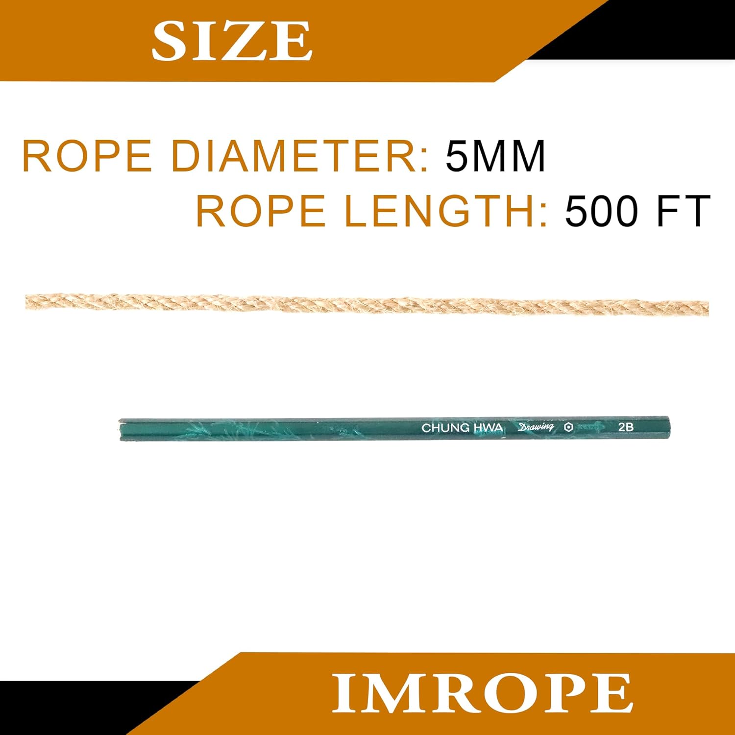 5mm x 500 Feet Natural Jute Rope, Twine for Gardening Tomato Climbing Plant Tie Floristry Crafts Gift Wrapping Packing Decor