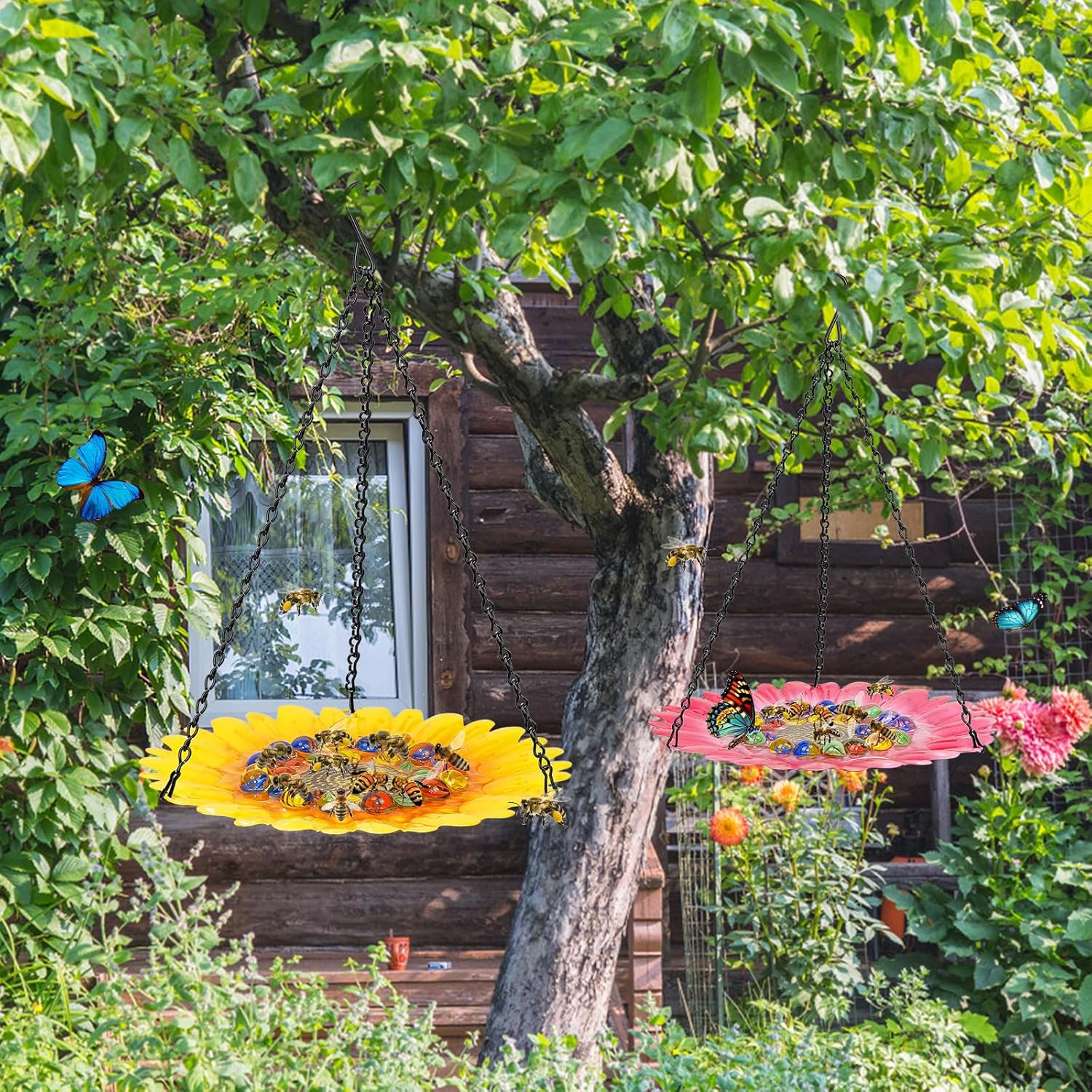 - 【Bee Feeder with Vivid Sunflower Design】 Bee watering station exhibits for feeding a distinctive visually appealing sunflower design that radiates vibrant colors, can appeal bees in your garden or yard, making it a delightful outdoor scene