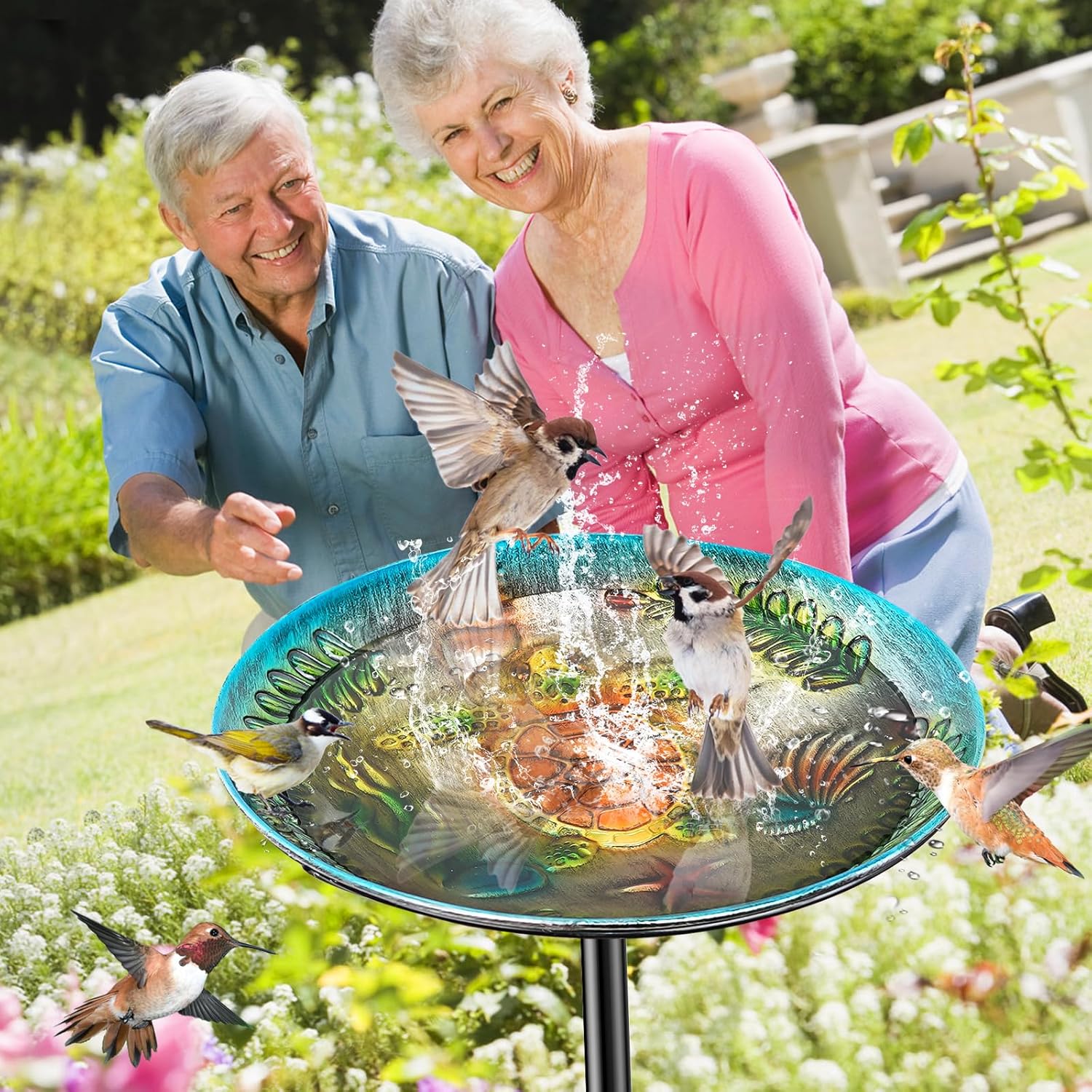 - 【Best Present】Metal Outdoor Bird Bath/Feeder, the best choice for outdoor decoration, Mother's Day, New Year and other festivals, an ideal present for bird lovers, Enjoy bird watching beautiful colors as wild birds drink and bathe in your bird baths. Keeping your yard or garden full of songbirds all year long!