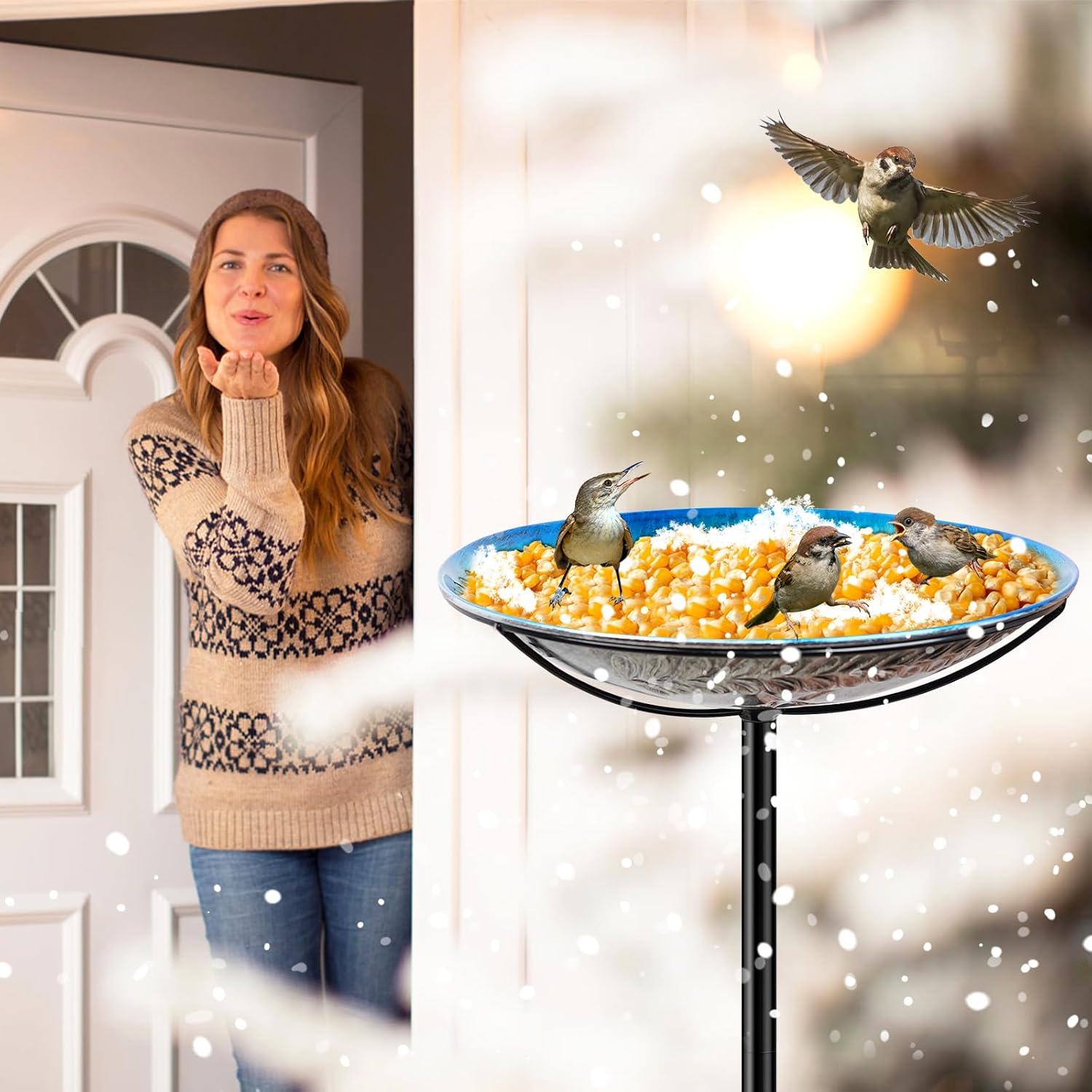 - Best Present:Metal Outdoor Bird Bath/Feeder, the best choice for outdoor decoration, Mother's Day, New Year and other festivals, an ideal present for bird lovers, Enjoy bird watching beautiful colors as wild birds drink and bathe in your bird baths. Keeping your yard or garden full of songbirds all year long!