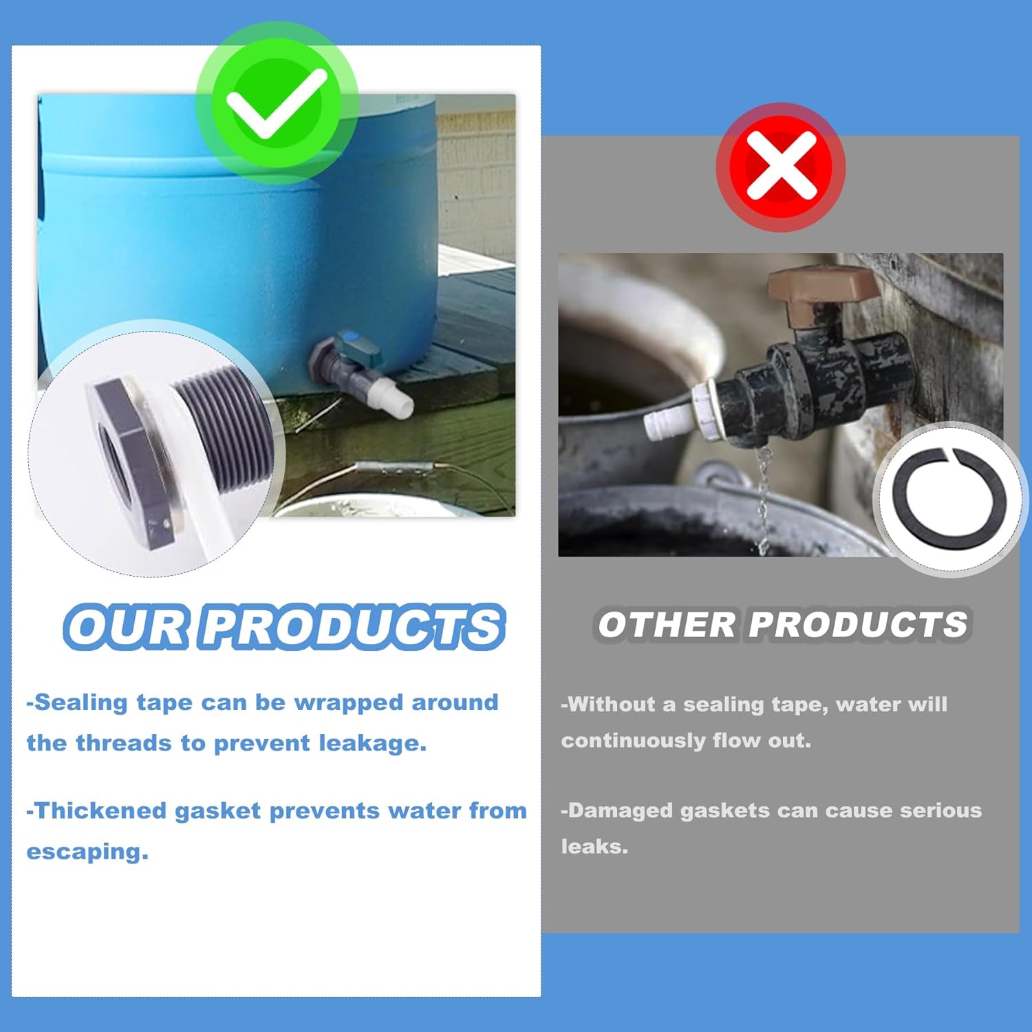 - Leak-Proof Design: The bulkhead connector features a carefully designed left-hand thread, ensuring a tight connection. It also comes with sealing tape to ensure a tight seal, effectively preventing leaks. Easy installation and safer use.