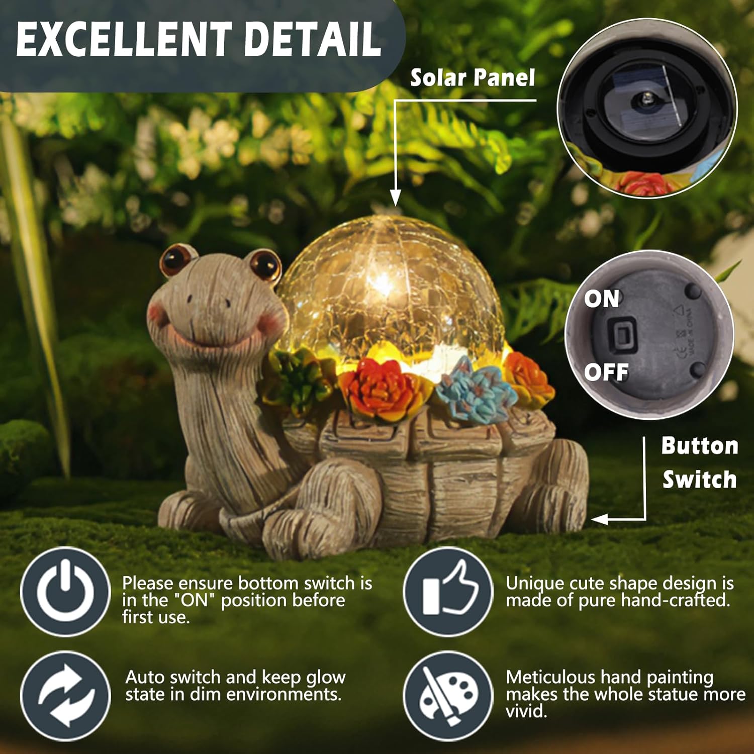 - 【SURPRISE DECOR】outdoor solar lights have a wide range of scene applicability, whether it is placed in the garden patio, yard, pathway, lawn, walkway, balcony, outdoor or indoor are eye-catching and artistic decorations. Turtle outside decor as gifts for women, mothers, children or friends are always hard to resist