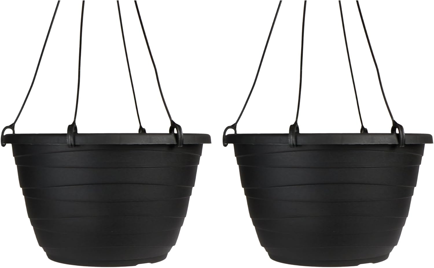 The HC Companies Wrapt Hanging Planters - Lightweight Plant Pot Hanger for Hanging Plants, Vegetables & Herbs - Outdoor & Indoor Hanging Basket for Plants (11" Black, Pack of 2)