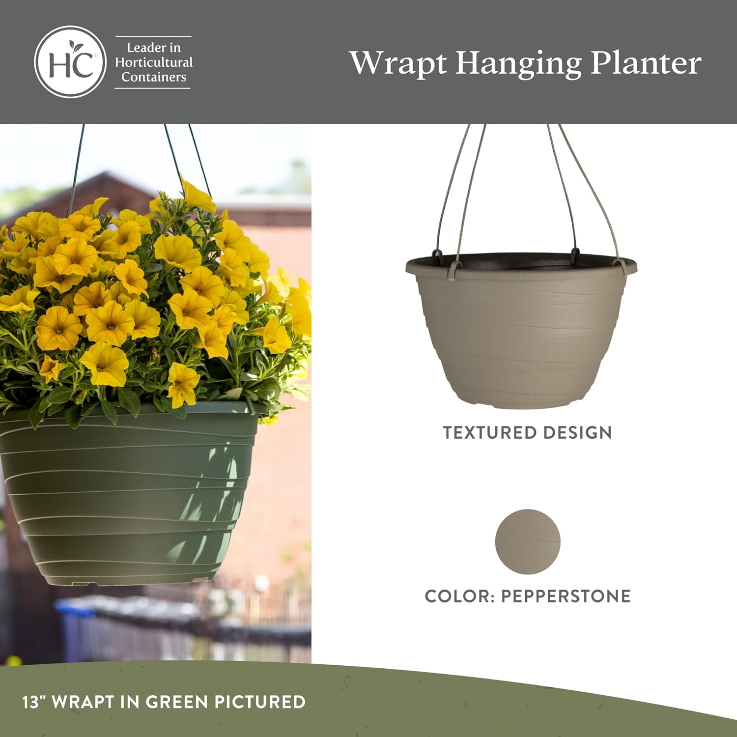 The HC Companies Wrapt Hanging Planters - Lightweight Plant Pot Hanger for Hanging Plants, Vegetables & Herbs - Outdoor & Indoor Hanging Basket for Plants (13" Pepperstone, Pack of 2)