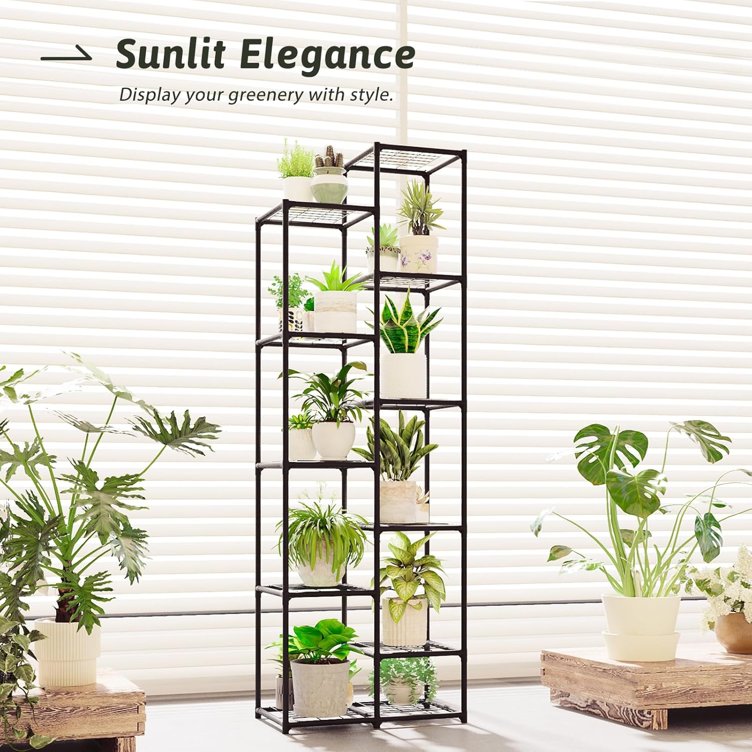 Tall Plant Stand Indoor Corner Plant Shelf Metal Plant Rack Plant Holder Flower Pot Stand for Multiple Plants for Living Room Patio Balcony Garden Porch Black