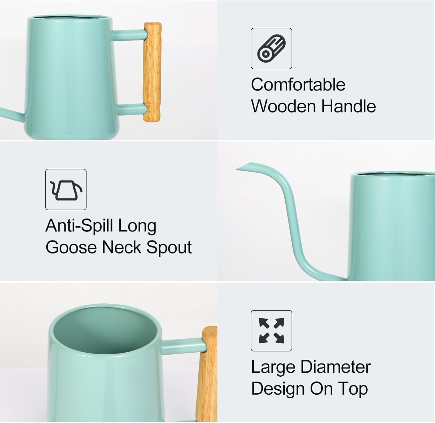 Watering Can Indoor Plants, 35 oz/1000 ml Metal Stainless Steel Watering Can Pot with Long Spout for Indoor House Plants Bonsai Outdoor Garden Flower Decorative (Green