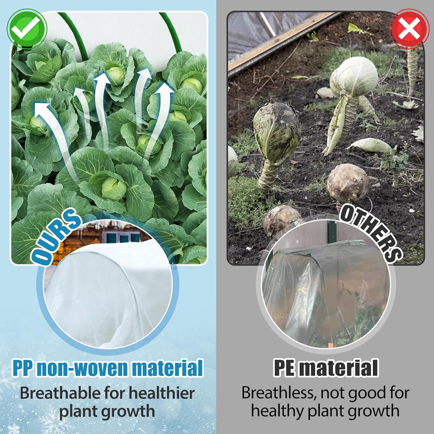 - Premium Material for Healthier Growth: Our freeze cloths for plants is expertly crafted from sturdy 1.0oz/yd² polypropylene non-woven fabric. Unlike traditional PE material, our innovative choice ensures not only superior cold protection but also excellent breathability, fostering a healthier and more vibrant growth environment for your plants.
