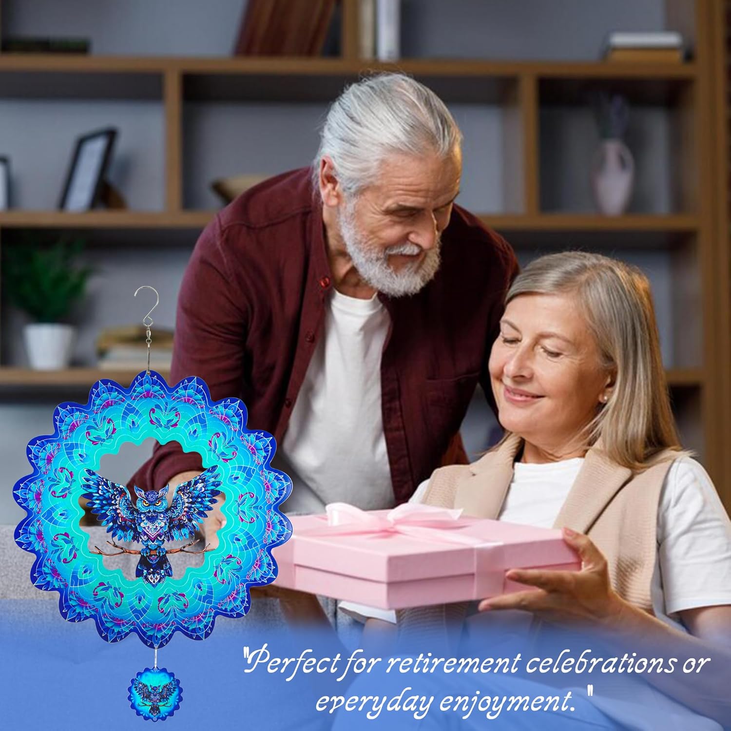 Owl Gifts for Women Men, Owl Hanging Wind Spinners Outdoor, 12Inch 3D Stainless Steel Reflective Wind Spinners Garden Decor