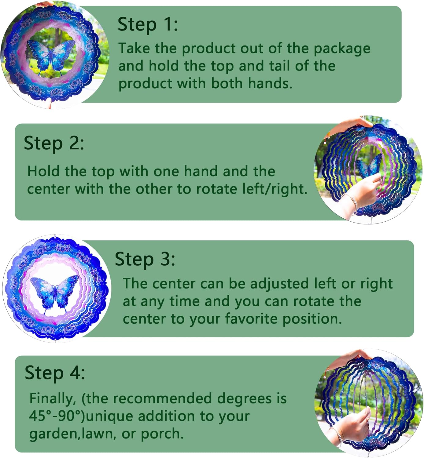 - 【Product introduction】: This 3D wind spinner is made of 12 inches and made of high-quality stainless steel. which adopts cutting technology and PUV printing to achieve a vivid butterfly shape.
