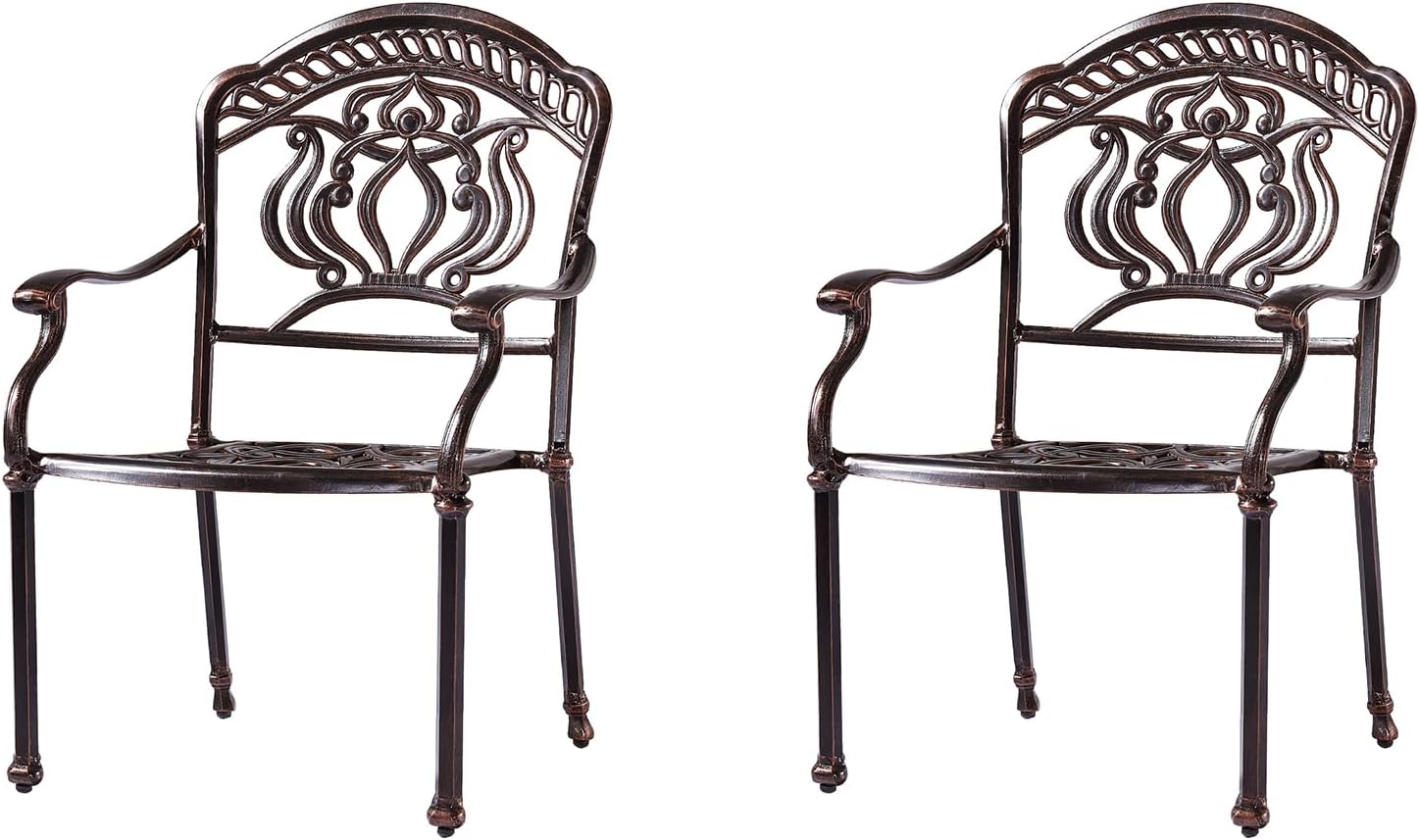 Outdoor Dining Chair Cast Aluminum Patio Chairs Set of 2 All-Weather Patio Dining Chair with Adjustable Feet for Backyard Garden (Barbecue Chair)