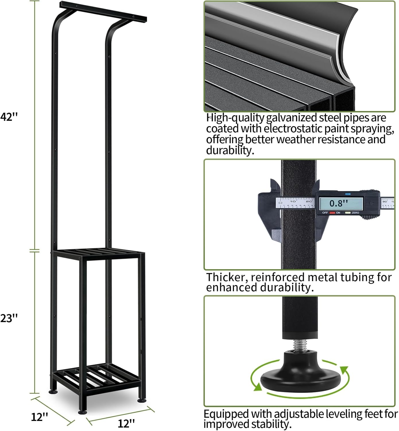 - 【Stable and Sturdy】 We have carefully selected the materials for this heavy-duty plant stand outdoor to ensure better stability and weather resistance. Each component is made with 0.8-inch thick reinforced metal tubing, and the entire surface is coated with a galvanized layer process. Whether indoors, in the living room, or outdoors in the garden, you can enjoy years of use.