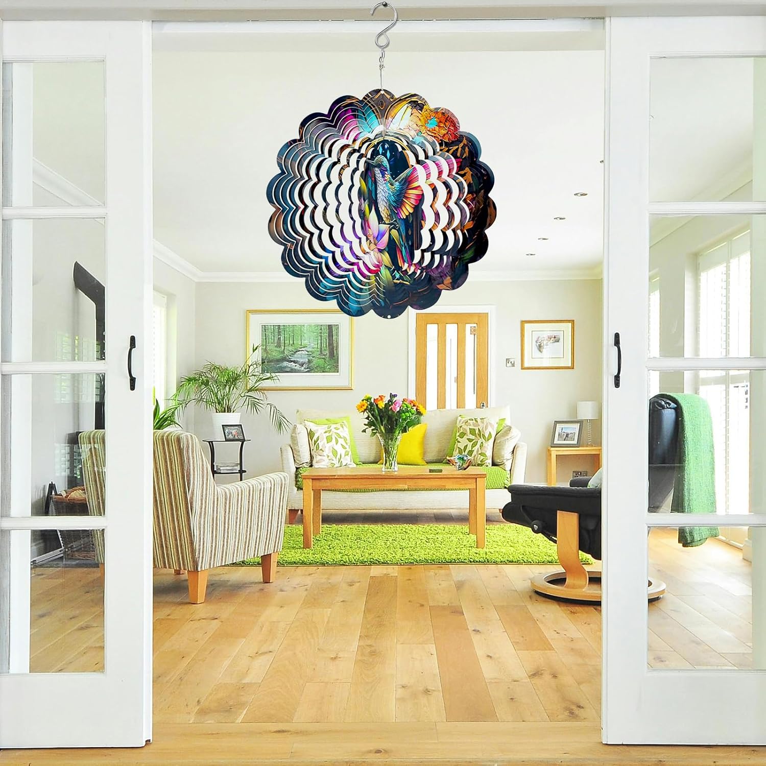 - Dynamic 3D Design for Mesmerizing Motion The 3D design of this hummingbird and flower wind spinner creates a captivating effect as it spins effortlessly in the wind. The reflective purple tones catch sunlight beautifully, while the included swivel hook ensures smooth and easy hanging in your favorite spot.