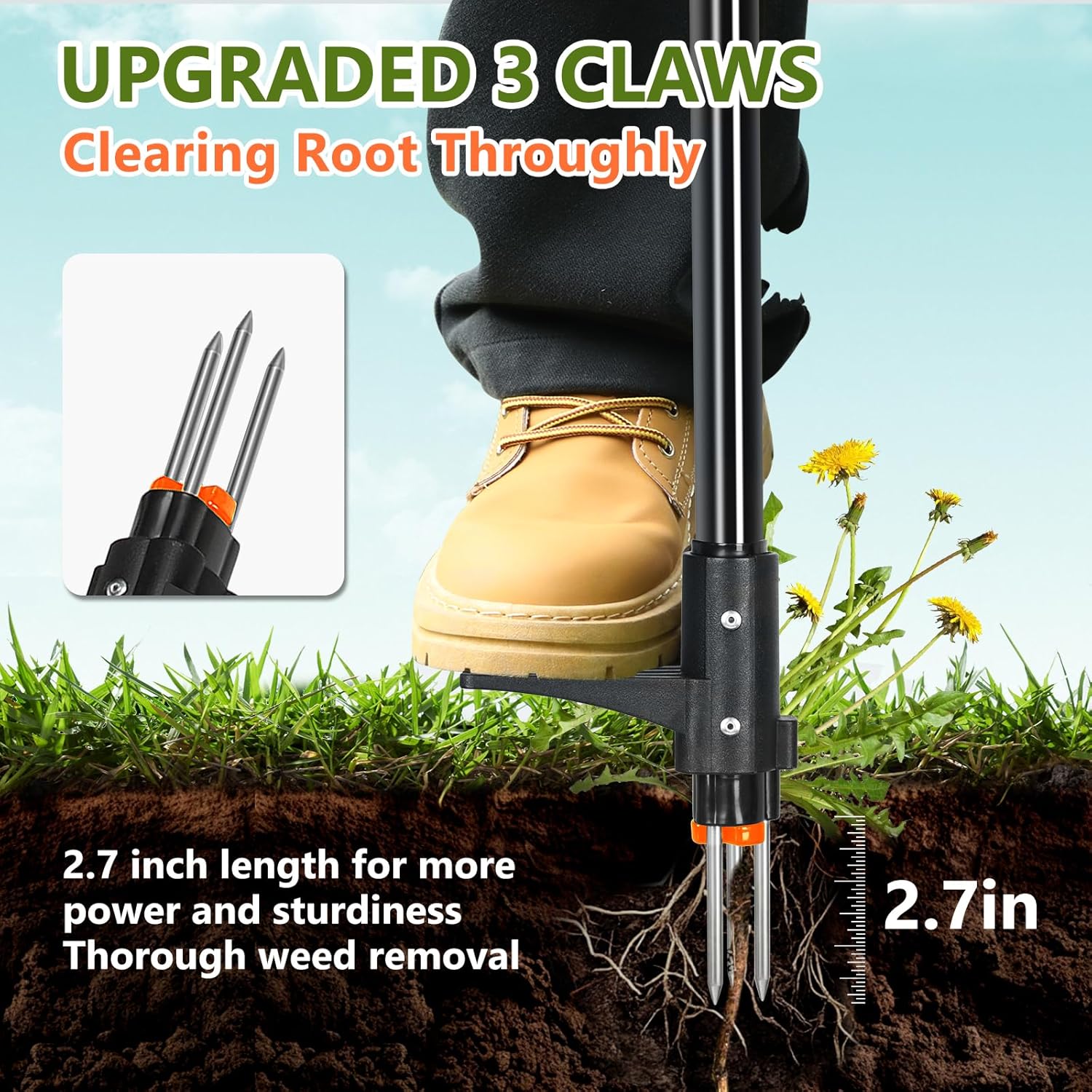 - Premium Material -- The 3 claws are able to easily penetrate the soil and reach the roots of weeds. The shaft is made entirely of sturdy metal that retains its strength without bending and is rust and corrosion resistant, ensuring longevity and eliminating worries about breakage or damage.
