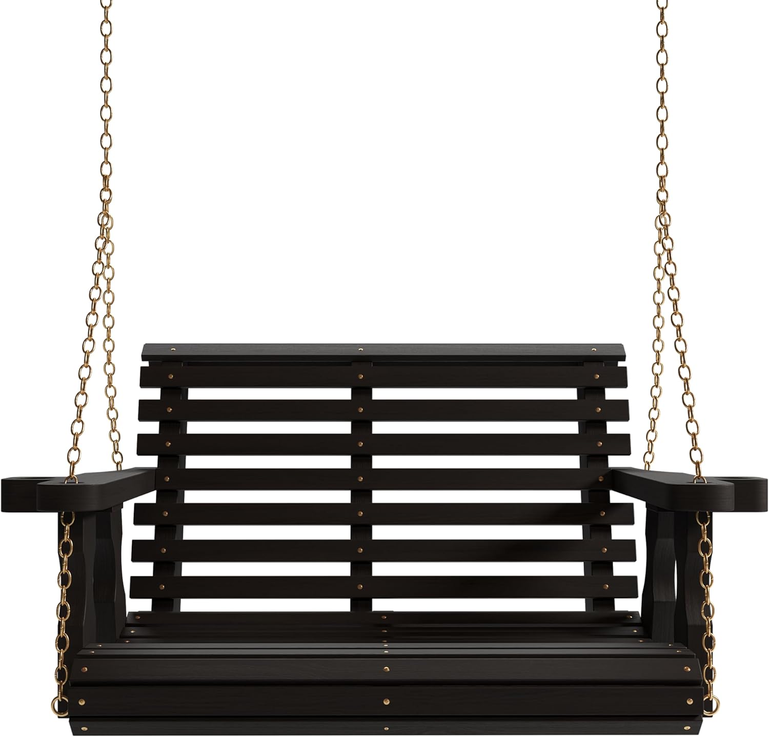 Amish Casual Roll Back Swing, 3-Foot, Semi-Solid Black Stain, Chains, with cupholders