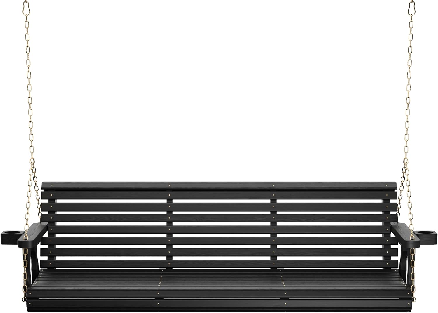 Amish Casual 6 Foot Roll Back Porch Swing with Cup Holders in Semi-Solid Black Stain - Amish Made in The USA from Treated Pine Heavy Duty 700 Lb. Weight Capacity