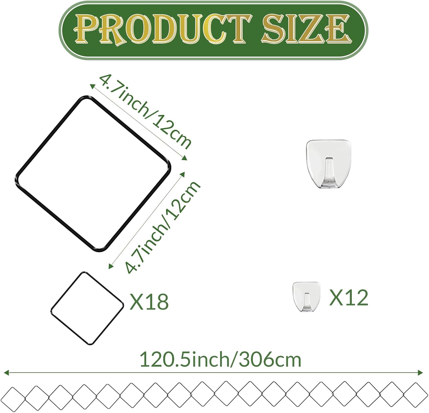 - 【Product Content】You will receive 2 packs chain trellis and 12 hooks. A set of 18pcs black square rings, a set of 18pcs green square rings, total 36pcs. Ideal for supporting climbing plants like Monstera, Ivy, and other vine plants. Meet your indoor and outdoor climbing plant growth needs.