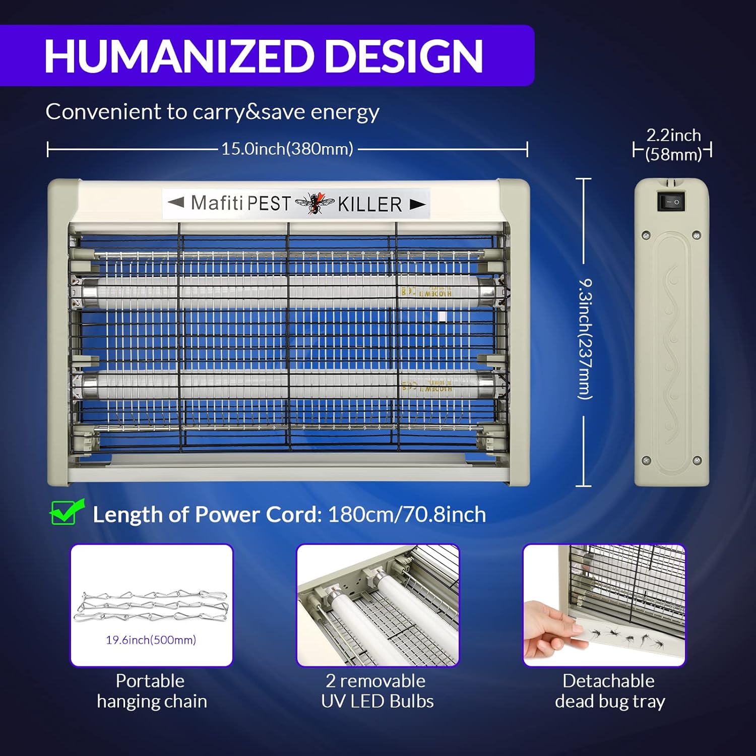 - 【 Safe and Eco Friendly 】 No any safety risk to you or the environment.Enjoy commercial strength pest control without the need for dangerous traps, repellants, poisons, sprays, chemicals or costly treatments. With protective grid to keep your kids and pets out of internal electrified grid. Its detachable grid design also allows you to replace the bulbs more portable.