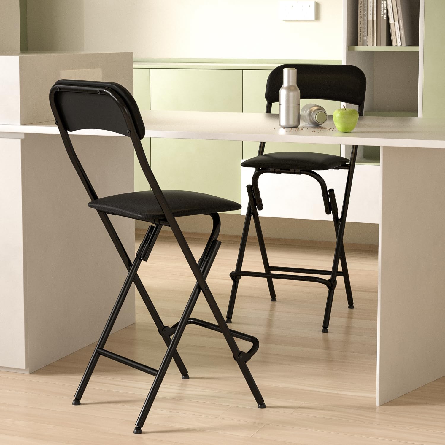 Folding Bar Stool with Backrest,25 Inch Leather Padded Counter Height Foldable Stool,Tall Folding Stool Chair for Gardening Kitchen Shop Cafe, Black (2 Pack)