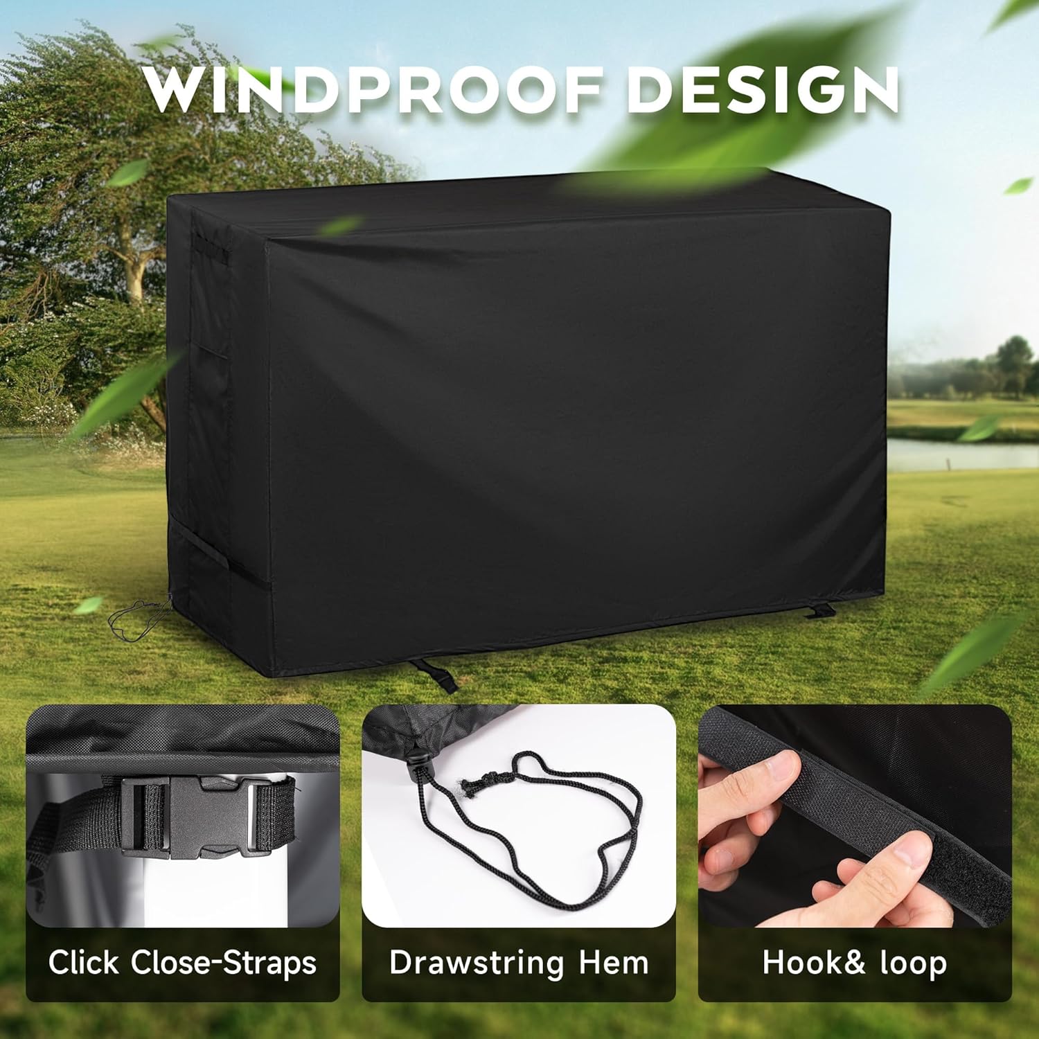 - FIT & SECURE – Drawstring and click close-straps allow you to easily adjust the outdoor table cover for a tight and custom-like fit. Four buckles can keep the cover in place and prevent the cover from being blown off on windy days