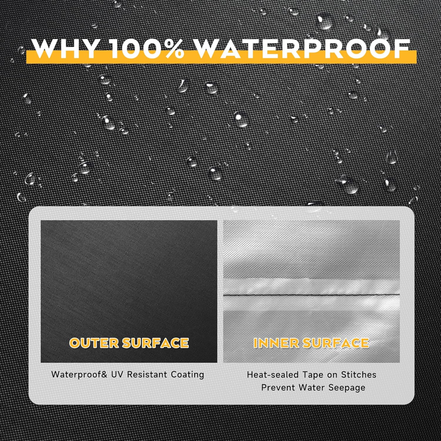 - WATERPROOF & ANTI-UV – Waterproof outer coating and heat-sealed tape on stitches prevent water seepage. Inner PU coating layer protects your outdoor bar table from damage caused by prolonged sun exposure