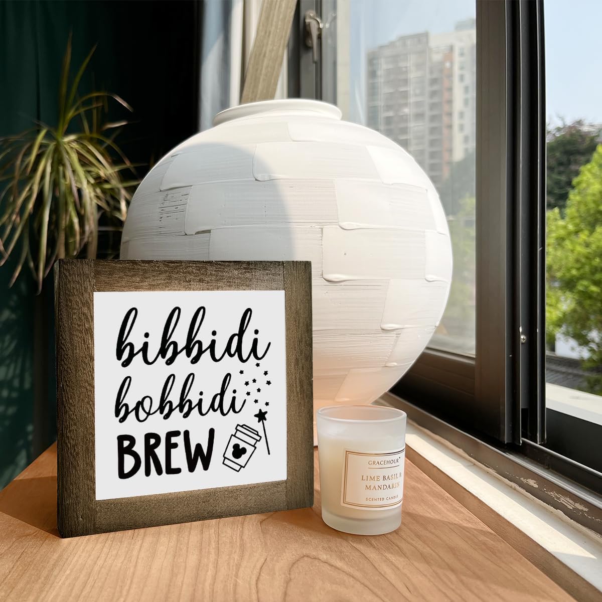 Bippity Boppity Wooden Plaque Sign, Rustic Coffee Table Sign, Kitchen & Home Decor, Tabletop Decor, Coffee & Disney Lover Gift, 5.9x5.9in