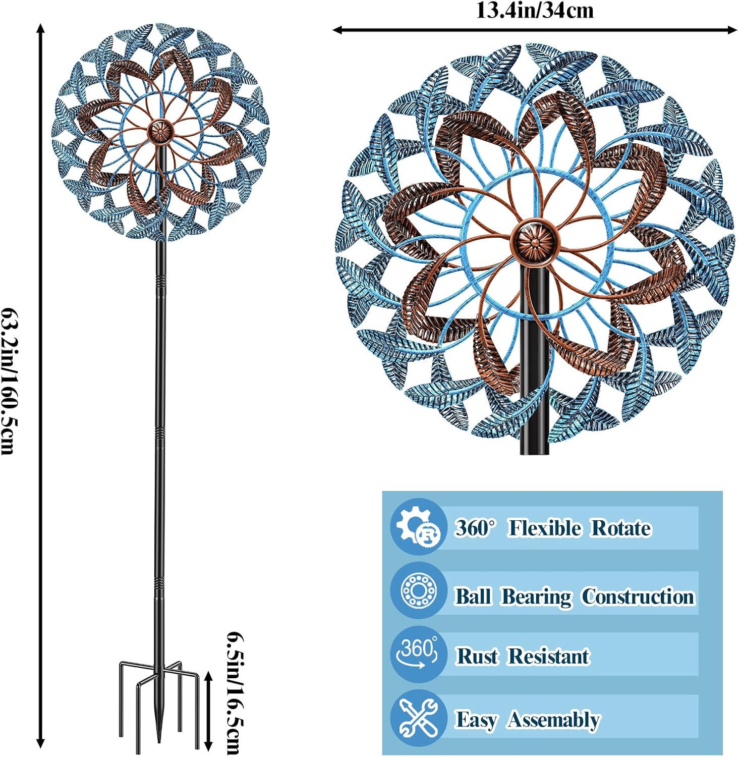360° Wind Spinners Outdoor, Wind Sculptures Windmill with Metal Stake, Kinetic Large Metal Yard Art Decor Spinners Pinwheels for Garden Outside Patio Lawn, 63.2 * 13.2"