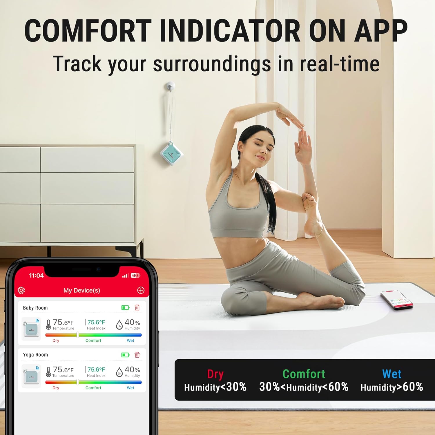 - 【Feature-Rich App】Our indoor thermometer comes with a feature-rich app, including temperature and humidity alerts, comfort index, online 1-year data chart tracking, data export, battery indicator, giving you complete control over your environment