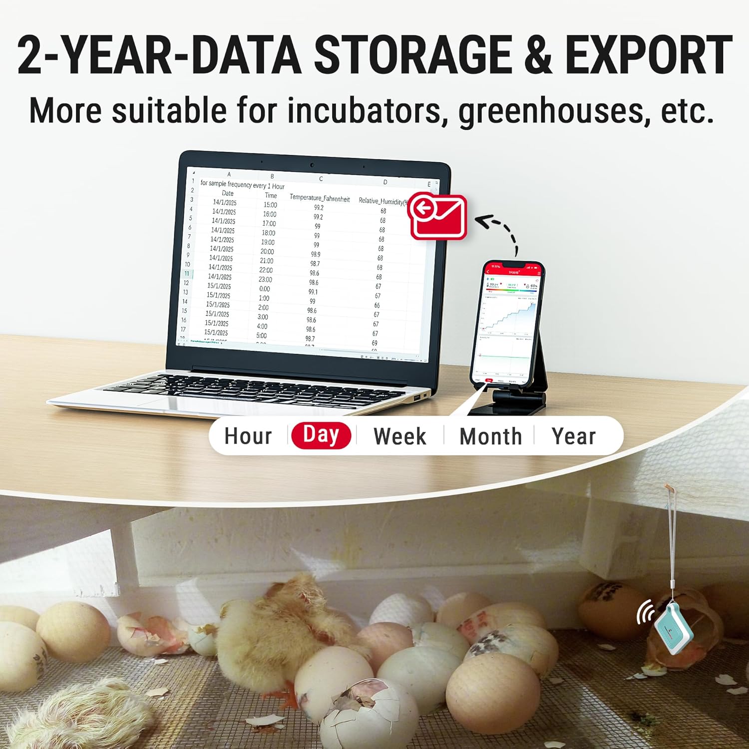 - 【2-Year Data Storage & Export】Store up to 2 years of data and easily export it for analysis, our greenhouse accessories thermometer is ideal for incubators, greenhouses, and other applications requiring long-term environmental monitoring