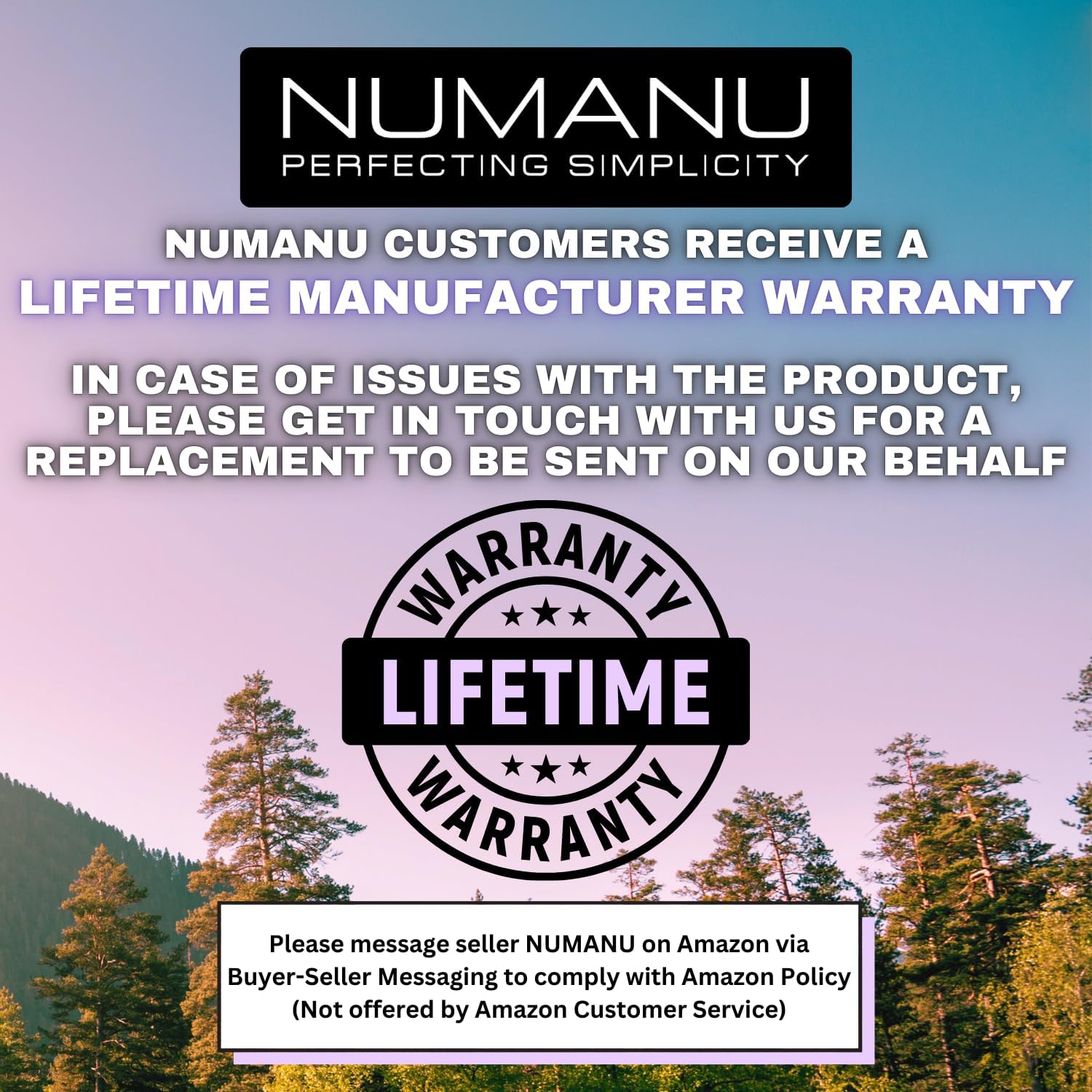- â ăUS-BASED, LIFETIME WARRANTYăAs a US-based brand, You are fully covered when purchasing NUMANU, No questions asked! Message us through Amazon Buyer-Seller Messaging (Not Amazon Customer Service), we will gladly solve any issue ensuring your satisfaction. â If you leave us a review requesting a replacement, we do not have the option to reply or contact you as a seller on Amazon in most cases.