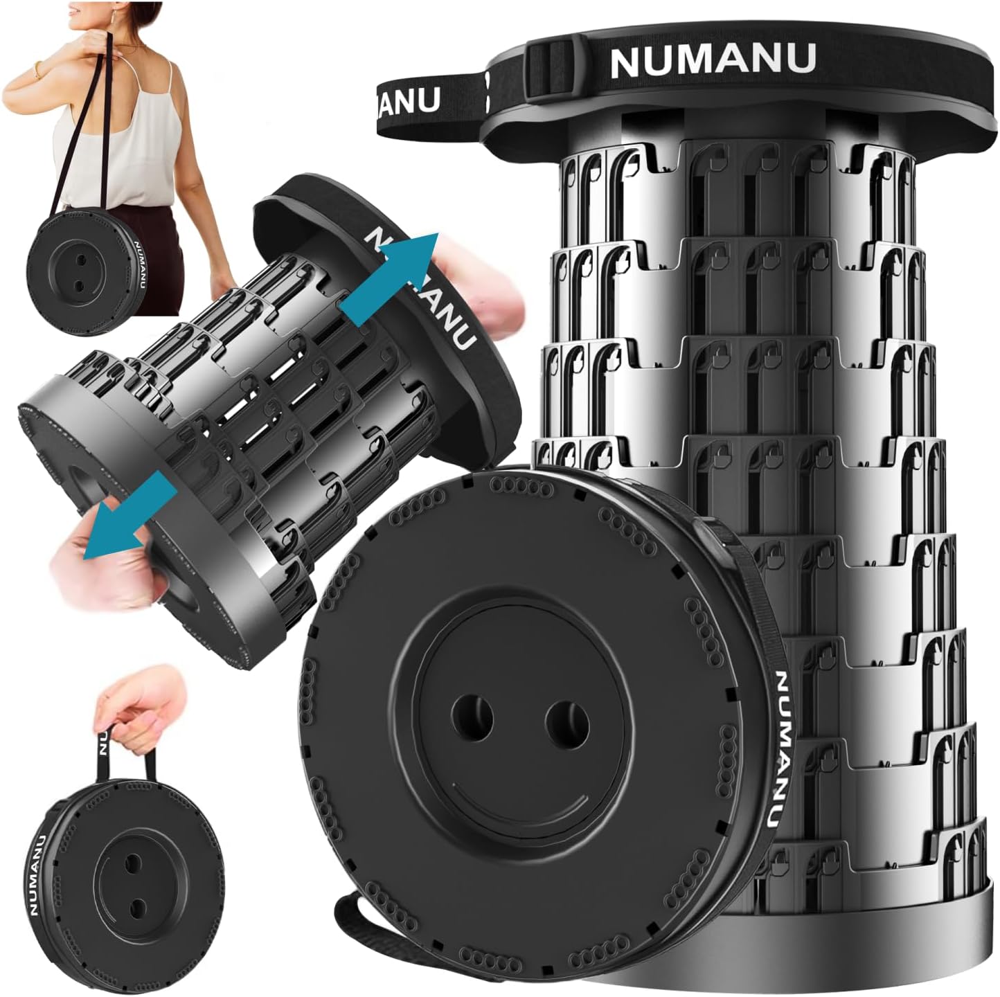 - đ„ăENDLESS OPTIONSăNUMANU Portable Telescoping Collapsible Stool has many use cases such as: Camping, Hiking, Waiting in Line, Live Concert Events, Plumbing, Construction, DIY/Fixing, Fishing, Gardening, Resting, Travel, Commute, Bus, Train, Subway and More...