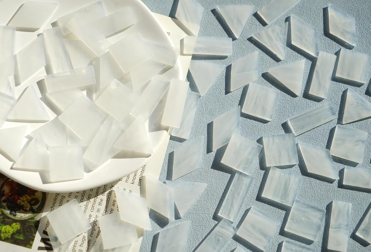 - Transparent Glass Mosaic Tiles for Radiant Light Effects: These tiles allow light to pass through, creating brilliant visual effects. Great for adding clarity and sparkle to your mosaic projects with their smooth, clear surfaces