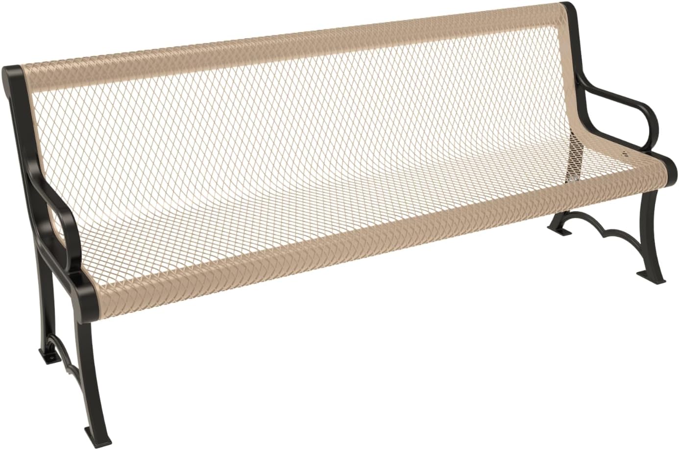 Coated Outdoor Furniture Heavy-Duty Outdoor Bench Thermoplastic Coated, Expanded Metal, Commercial-Grade Garden Bench, Made in America (Portable with Back, 6 Ft, Tan)