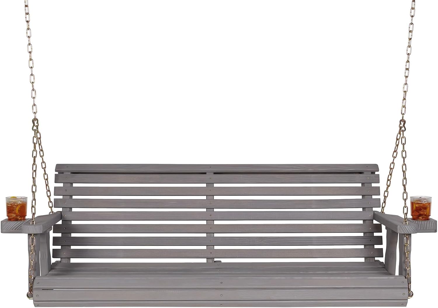 Amish Casual 5 Foot Roll Back Porch Swing with Cup Holders in Semi-Solid Grey Stain - Amish Made in The USA from Treated Pine Heavy Duty 700 Lb. Weight Capacity