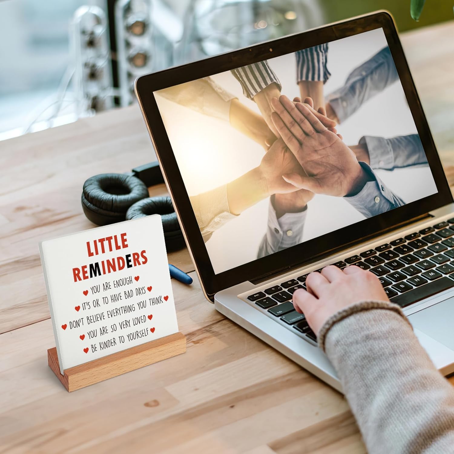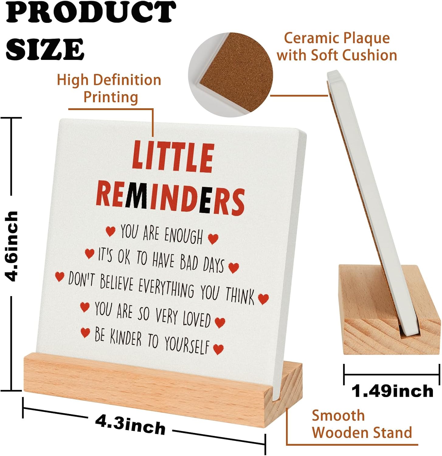 - Positive Daily Reminders for Desk Accessories: The Uplifting Little Reminders âYOU ARE ENOUGH...â are Made from good-quality and well packaged in a box. It can express encouragement and conveys the artistic touch. It is easy to carry and takes up less space with a 4.3"x4.3" eye-catching ceramic plate and a L4.3"x W1.5" smooth wooden base. Suitable for gift giving to friends, Teenage, graduates, colleagues and college girls, etc. Give them positive energy and inspiration with this delicate emotion cheerful support gift.