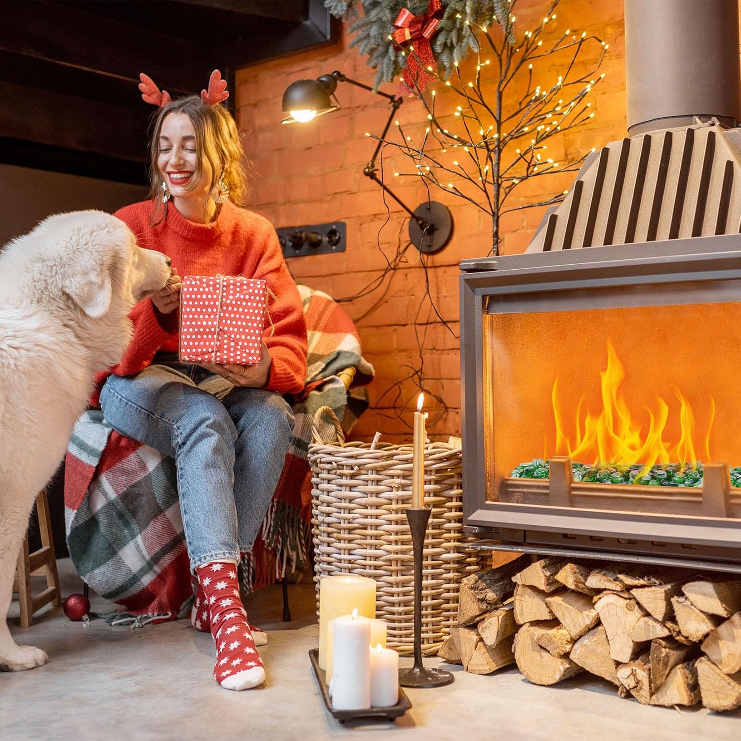 Fire Pit Glass Rocks Square, Fire Glass Cubes, Tempered Beads for Fireplace, Firepit Table Indoor or Outdoor, Replacing Traditional Burning Wood 20 pounds, Green Reflective