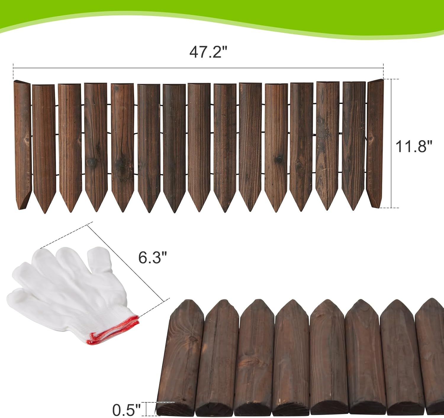 - 【Easy to install】: The garden wood edging border adopts insertion design, which is convenient to use. And multiple fences can be connected with leather wires , it also can be easily cut to fit the lengh of your garden or yard, saving your time and effort.