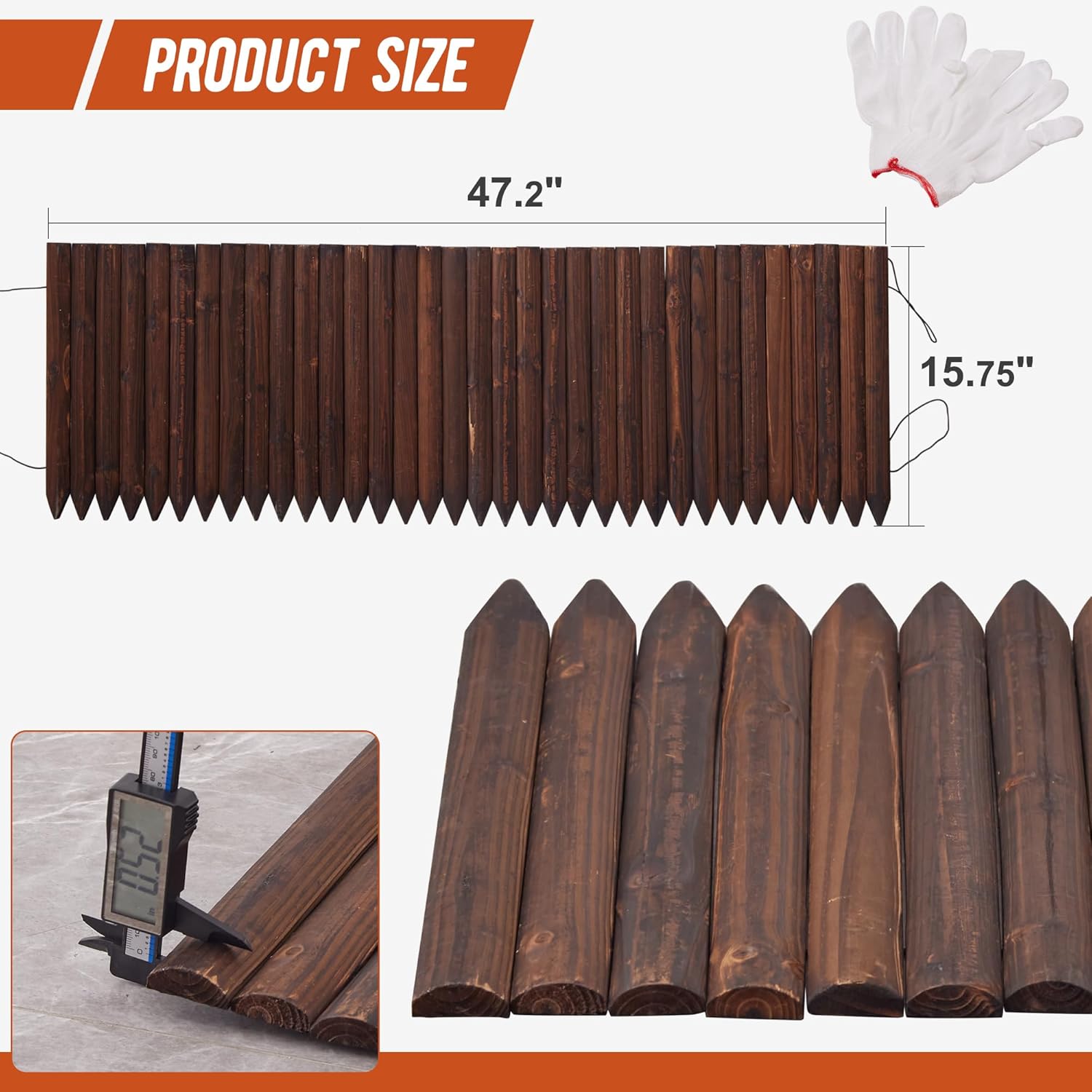 Garden Edging Border Garden Fence Wood Fence Border for Yard Patio Path Edging Decorative Landscape Edging Flower Bed Fence.15.7" H-2pcs