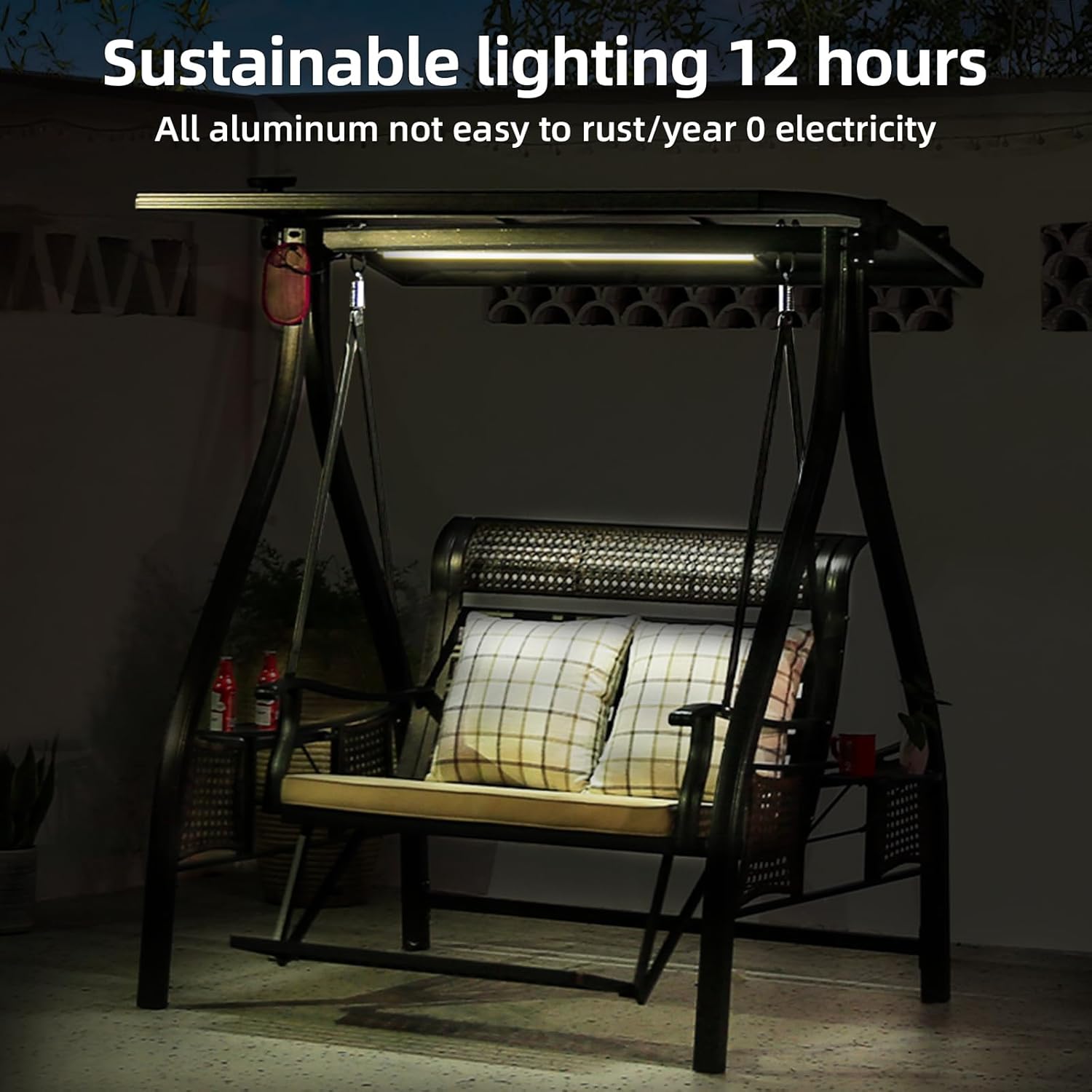- Adjustable Aluminum Alloy Canopy: Upgraded designed with an adjustable hardtop aluminum alloy board canopy, which is built to last and is not easy to deform. The all-weather hardtop canopy protects against UV rays and rain. Porch swing with solar receiver, energy saving and environmental protection, more convenient